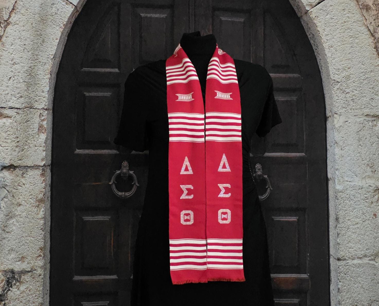 Delta Sigma Theta Graduation Red and White Kente Stoles.