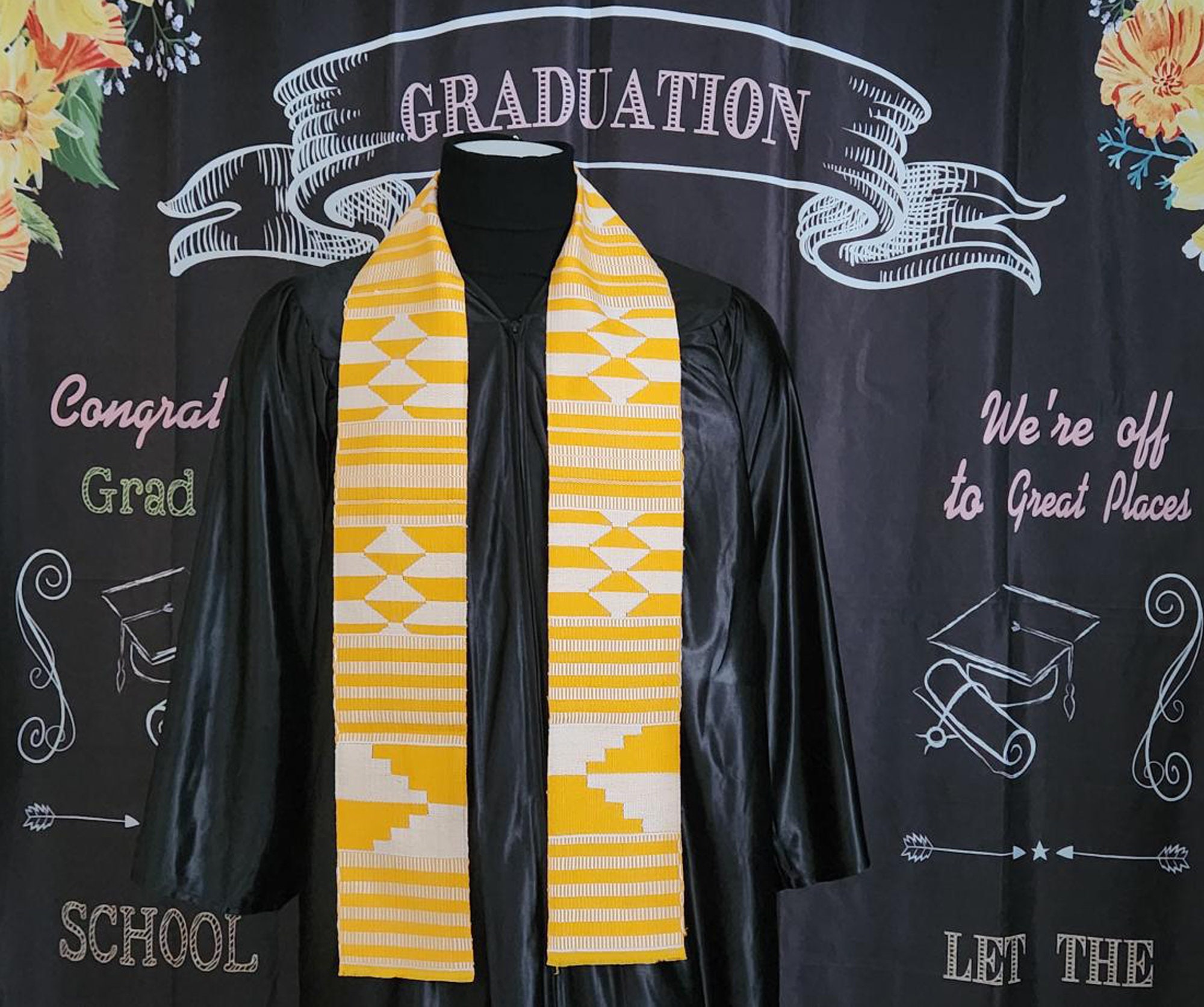 Yellow and White Double Woven Kente stoles.