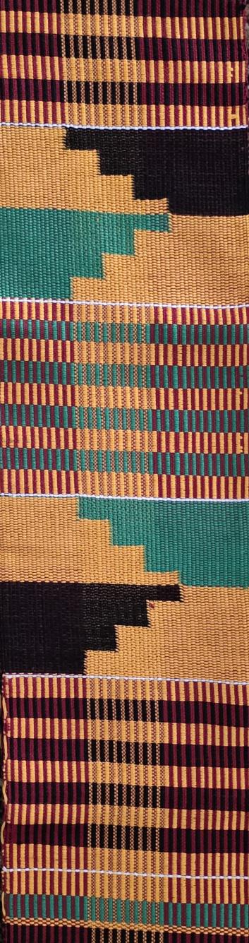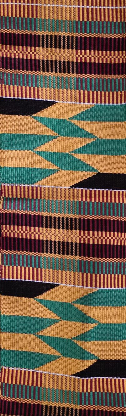 ADWINASA kente cloth literally means “all motifs are used up.” Handwoven in Bomwire, Ghana. 72" x 5".