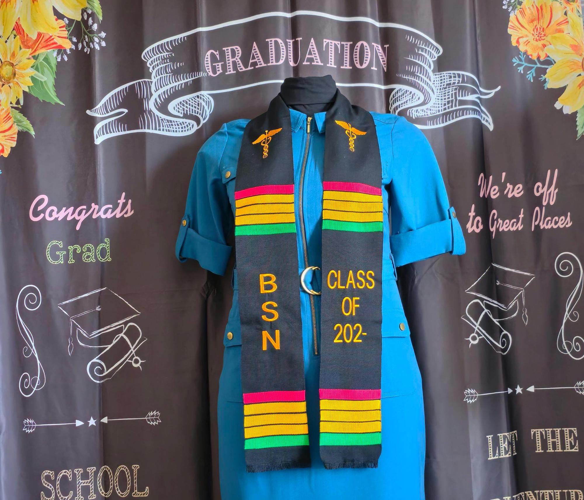 BSN Class of 2026 Kente Stoles. Two Caduceus.