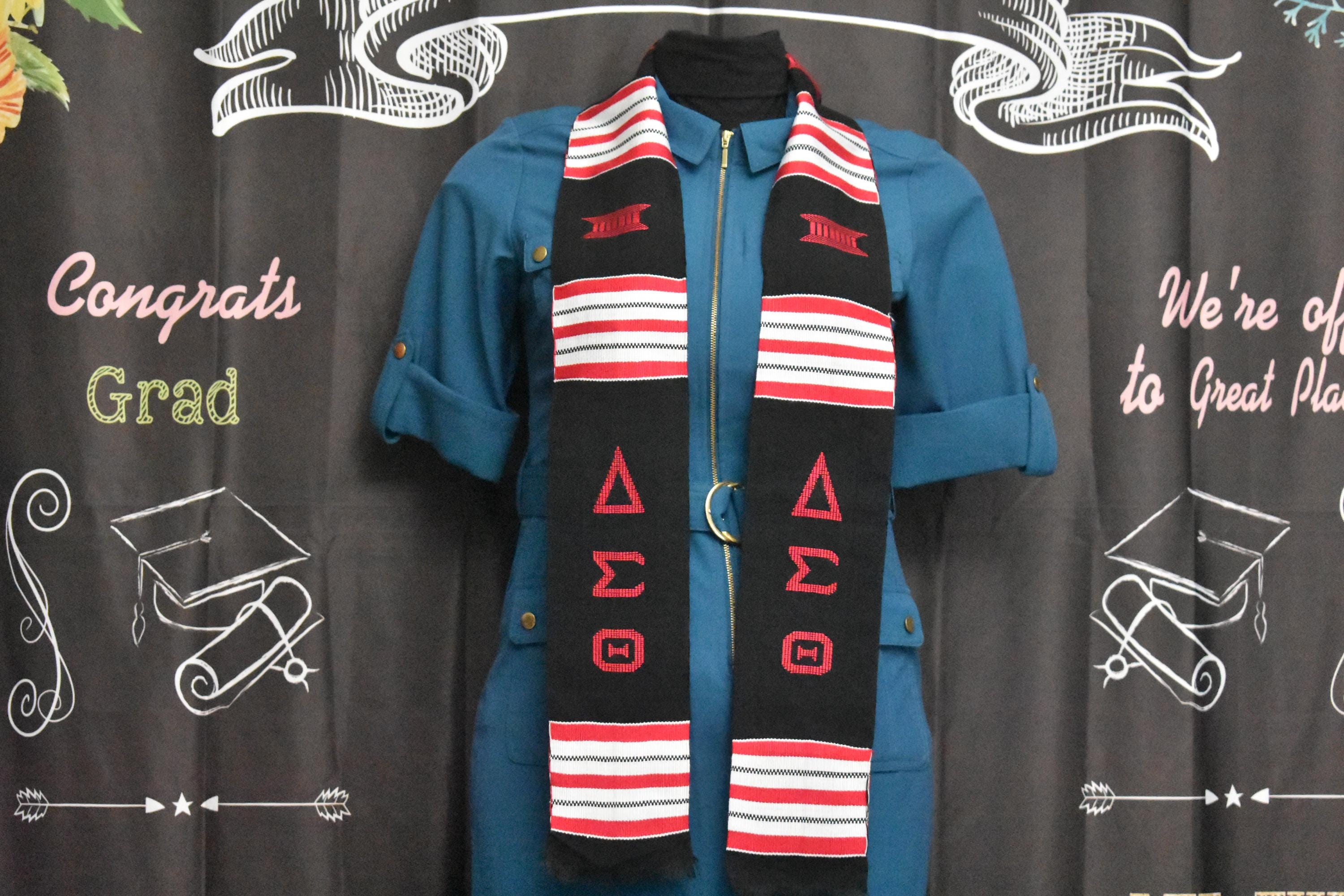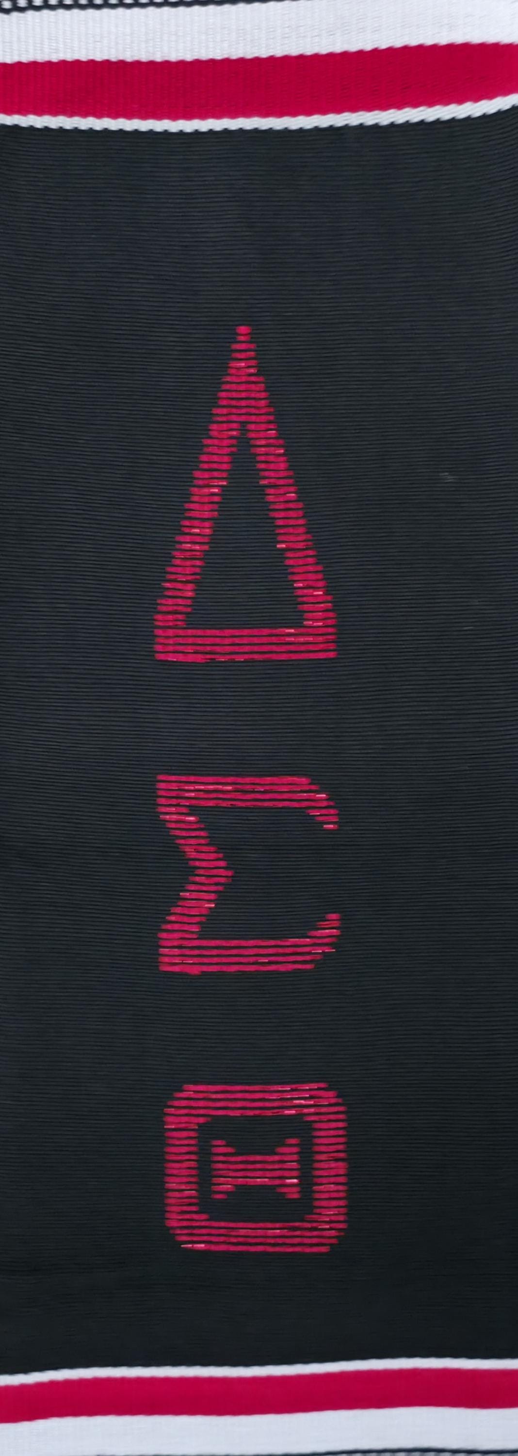 Delta Sigma Theta Black Kente Stoles With Red Letters.
