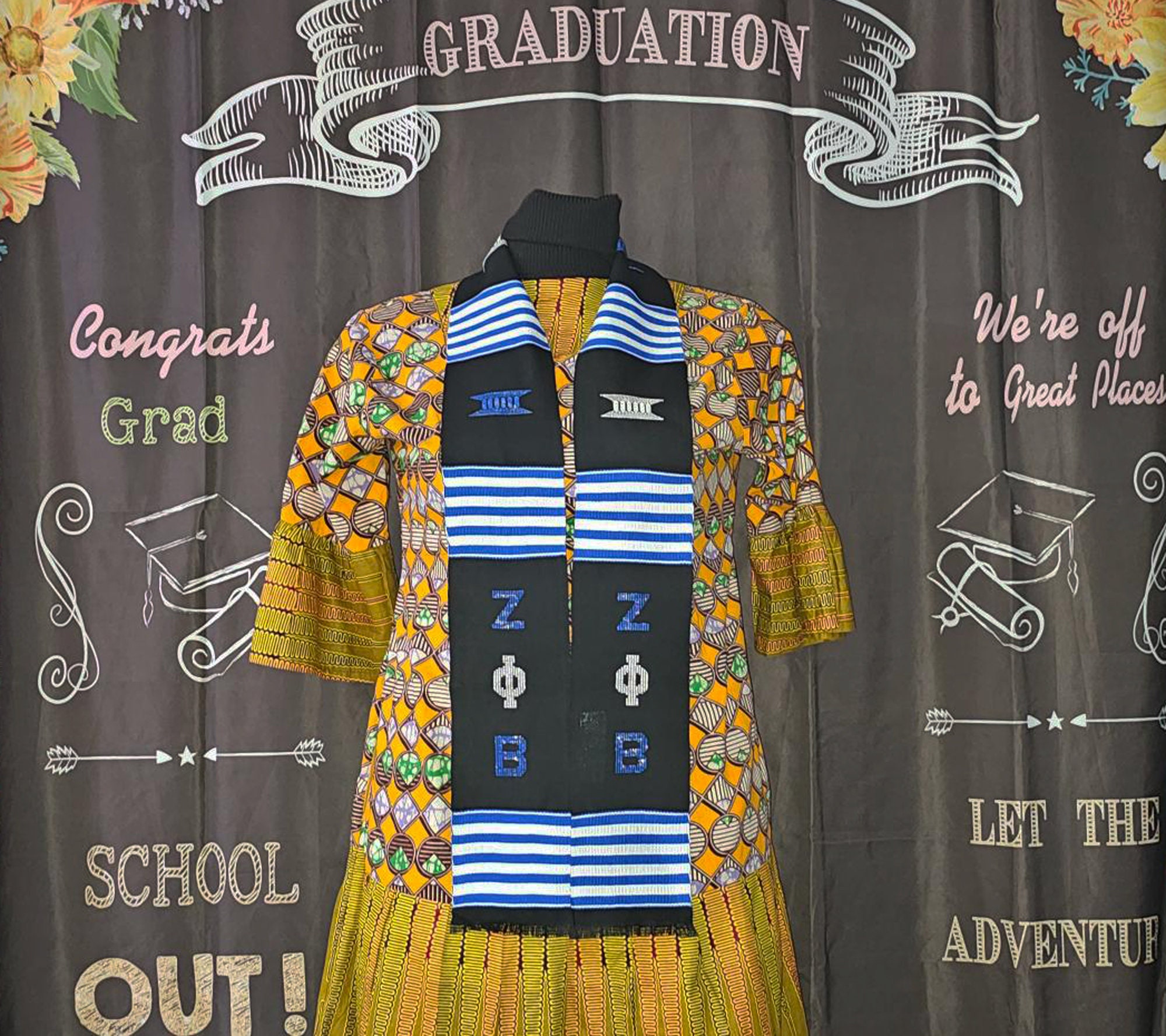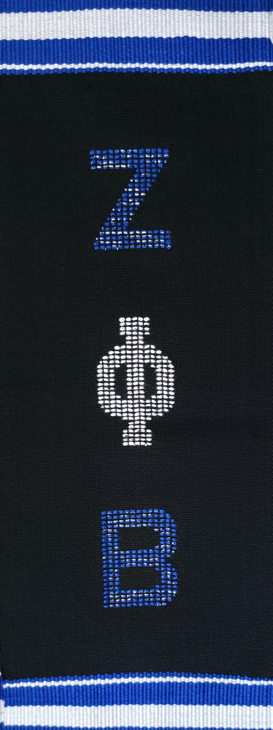 Black Zeta Phi Beta Kente Stoles. White Letters.