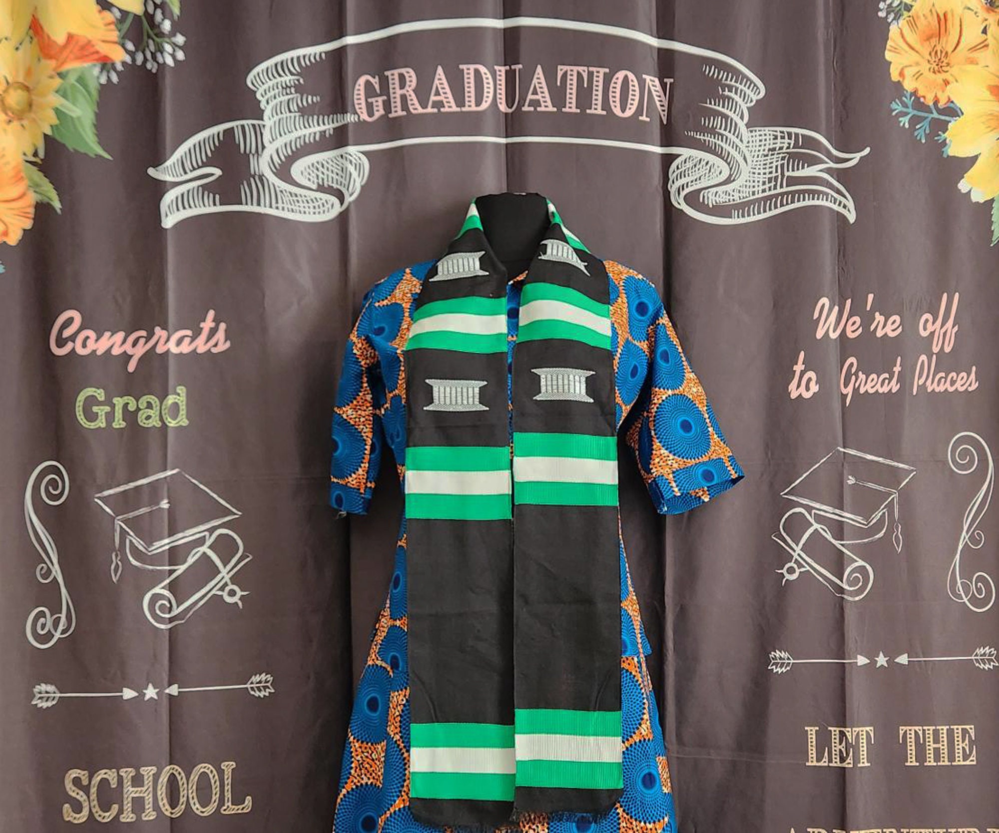 Custom Design Nigerian Black Kente Stoles.