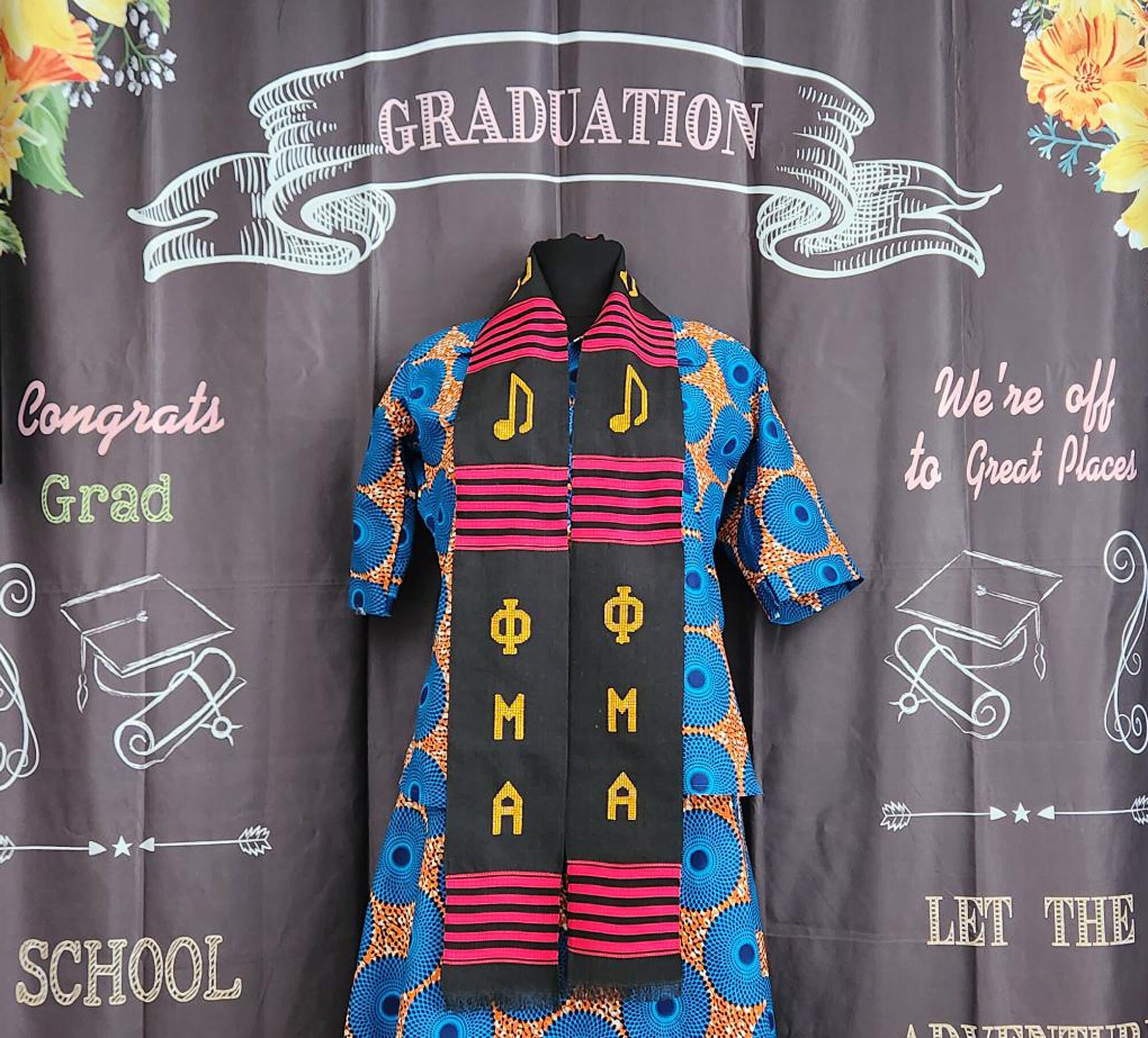Phi Mu Alpha Kente Stoles Black with Red-Gold.