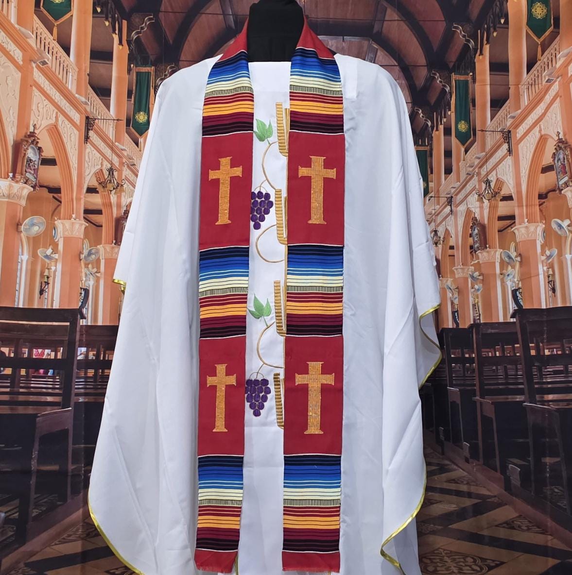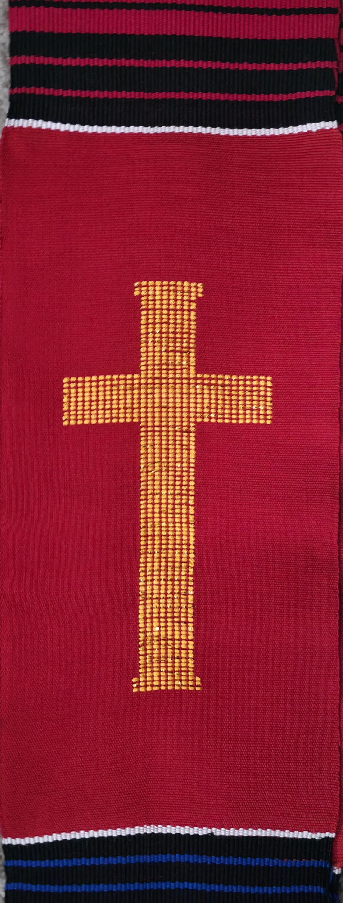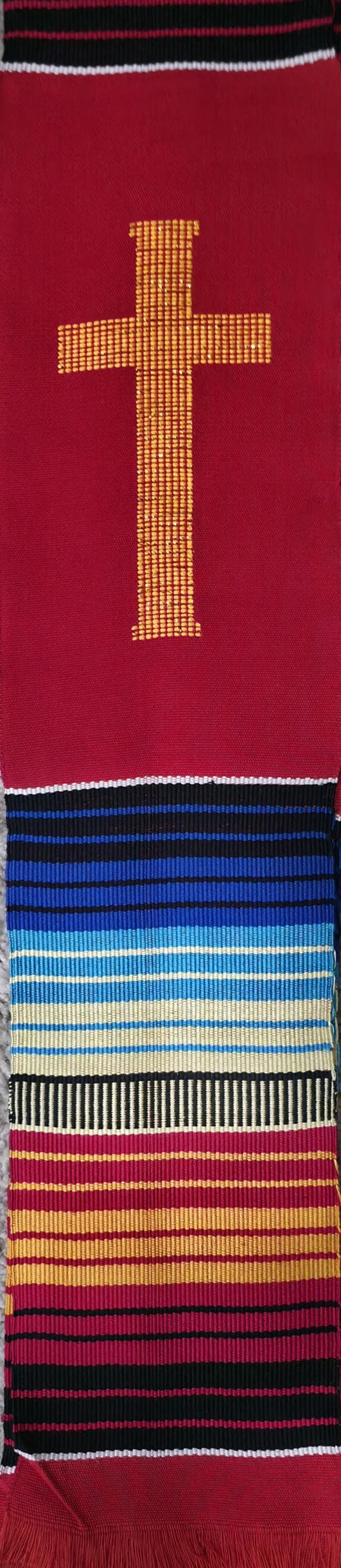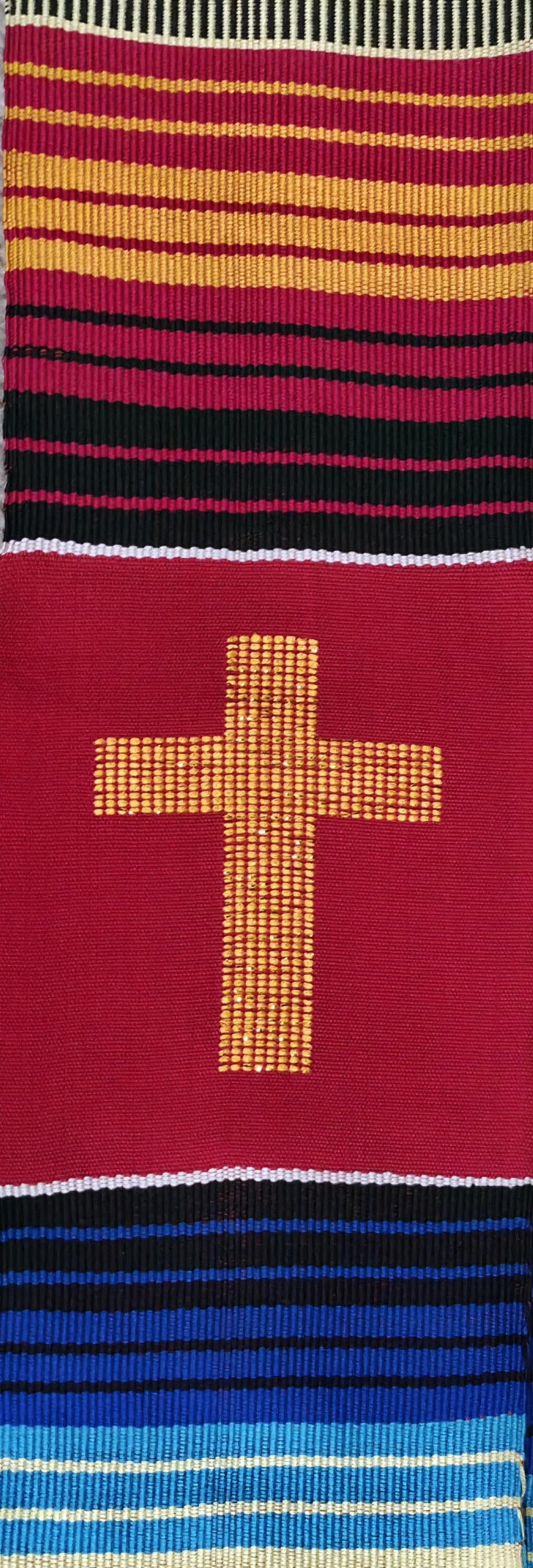 Multicultural Red Kente Clergy Length stole.