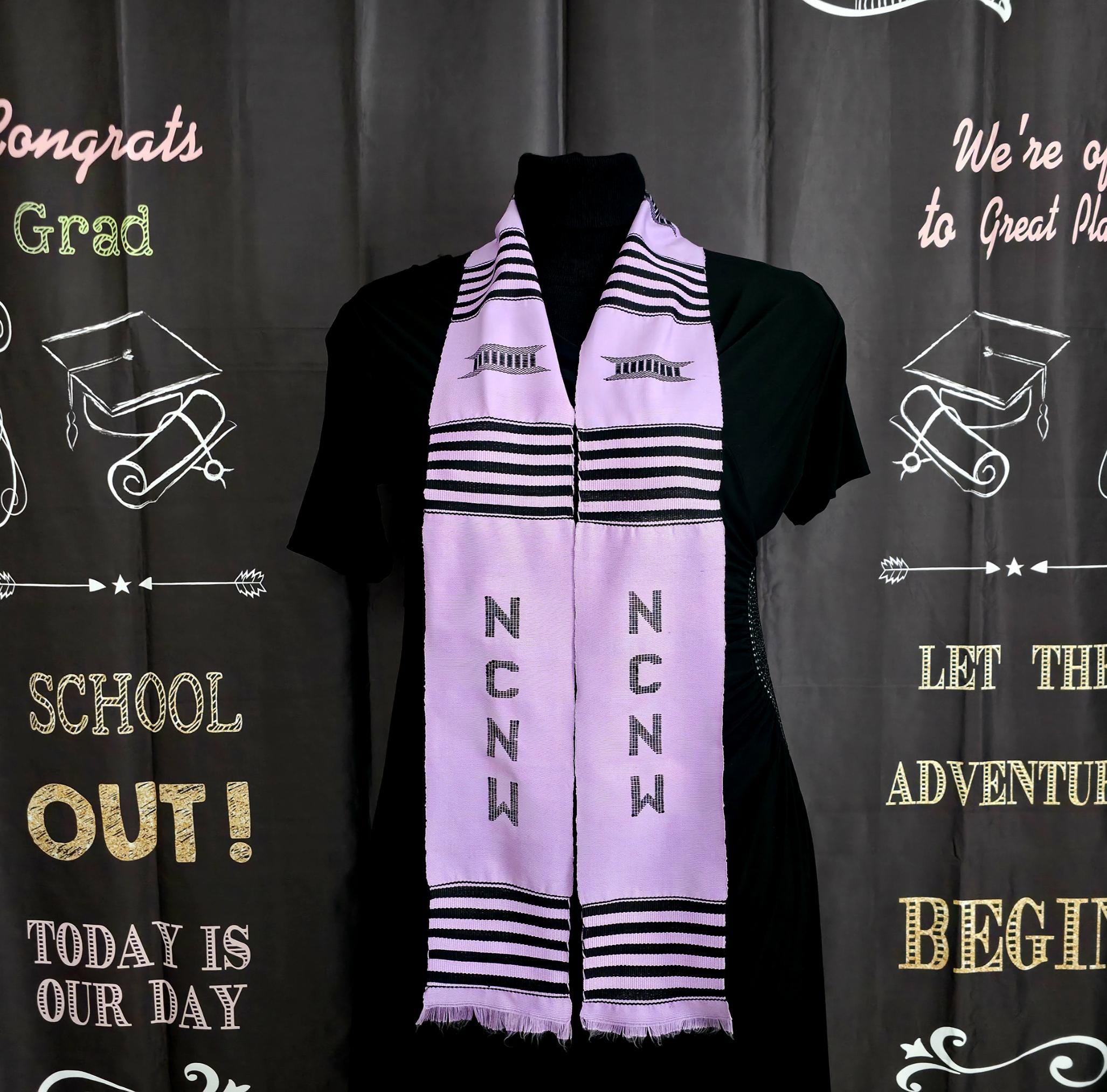 National Council of Negro Women Kente Stoles Lavender-Black.