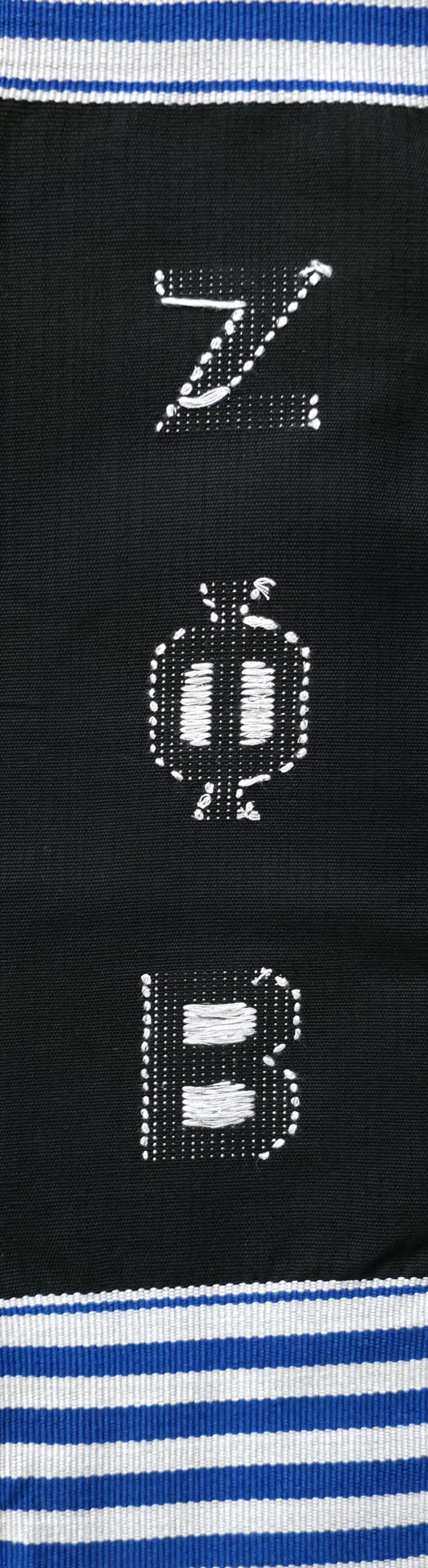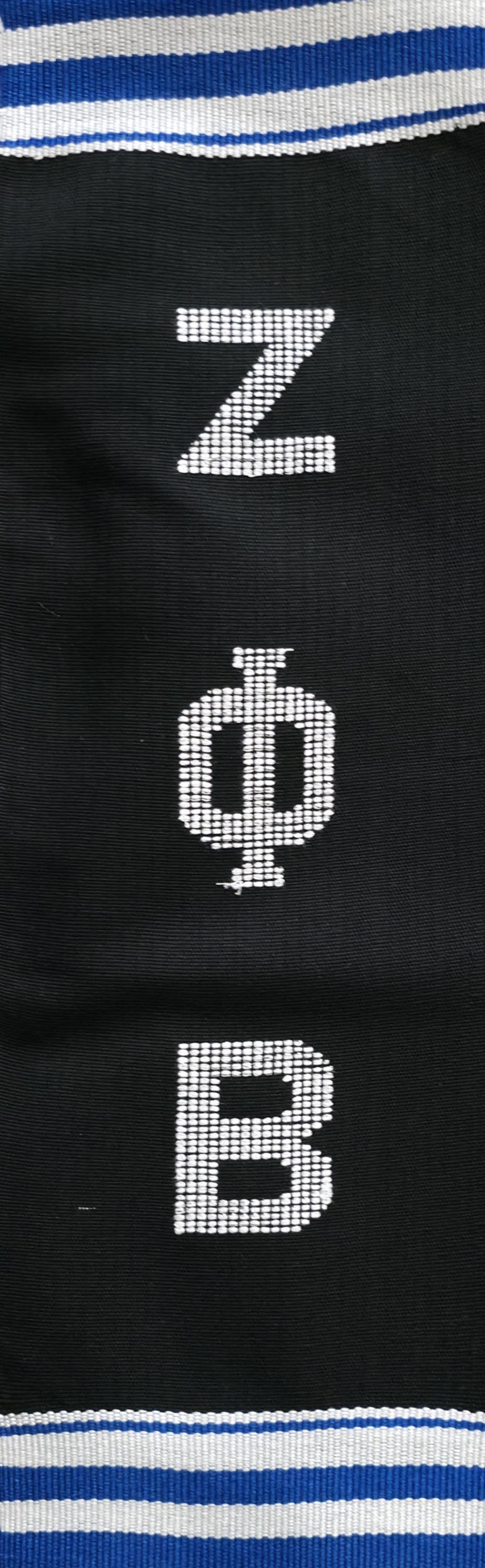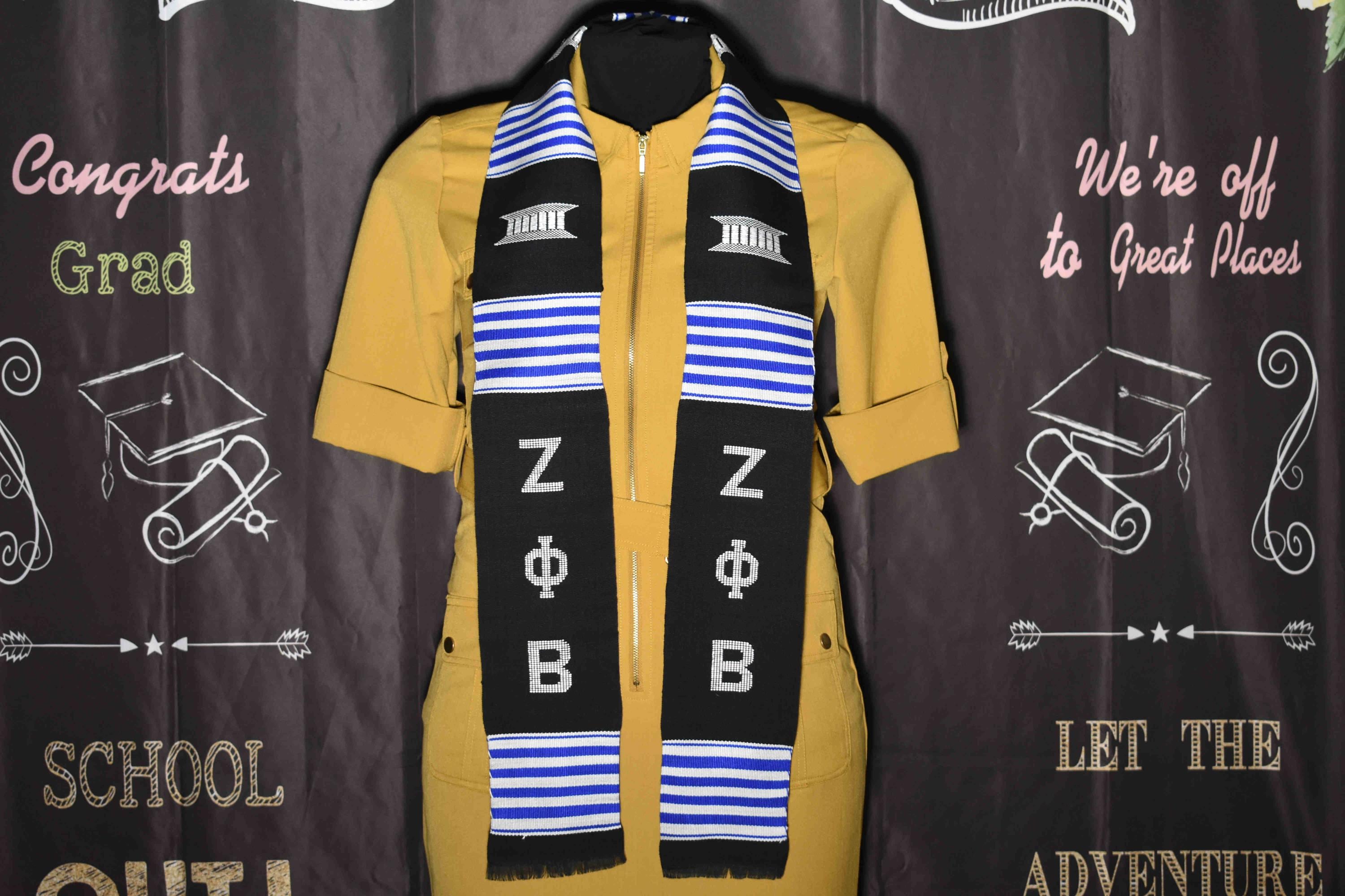 Zeta Phi Beta Black Kente Stoles. White Letters.