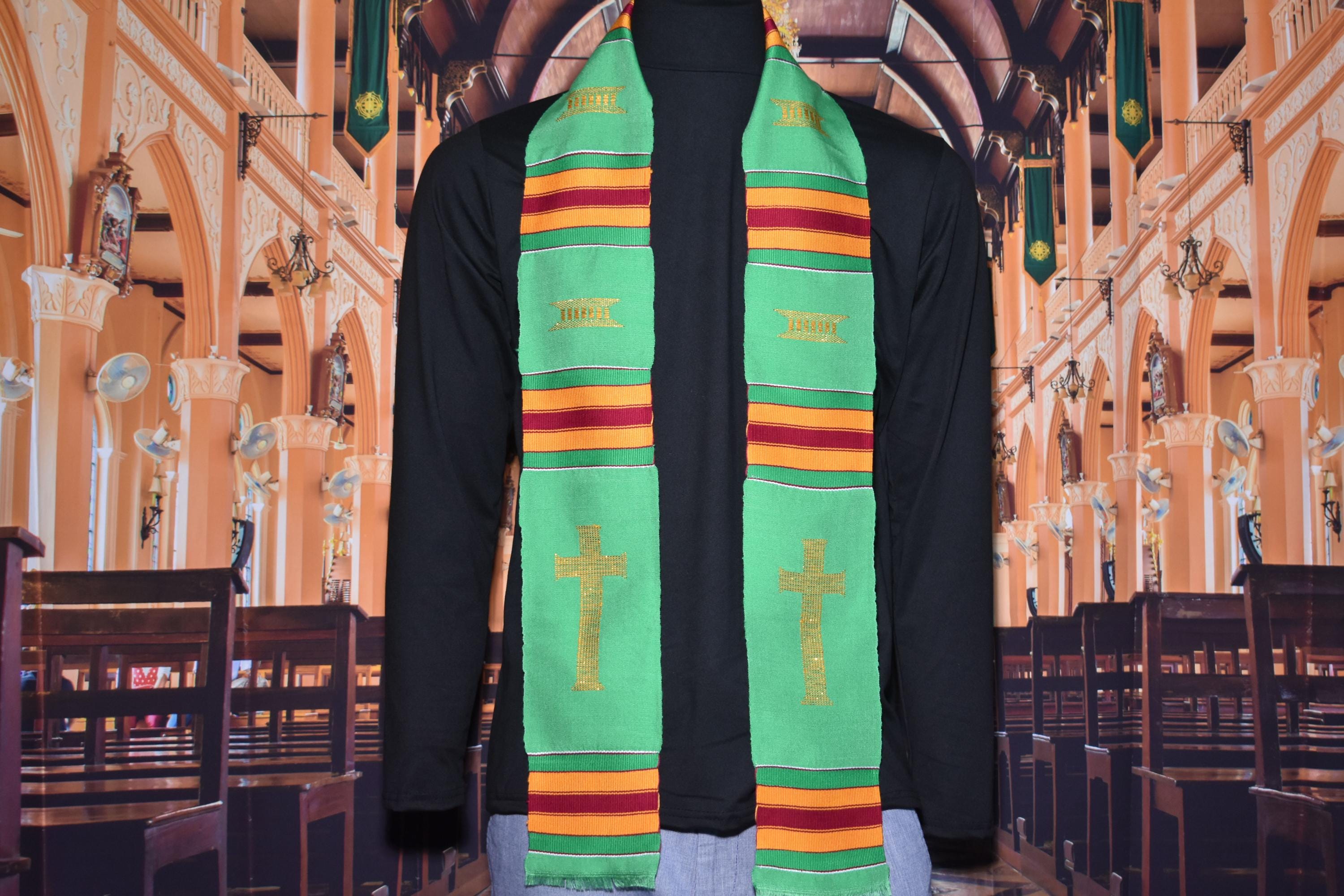 NOTE: USPS Ground Advantage is the slowest, cheapest and delivery days is NOT GUARANTEED. Normally takes 4-9 days for packages to be DELIVERED. Please take note.Cross Green Kente CLoth StolesHandwoven in Ghana72" x 4.5"
