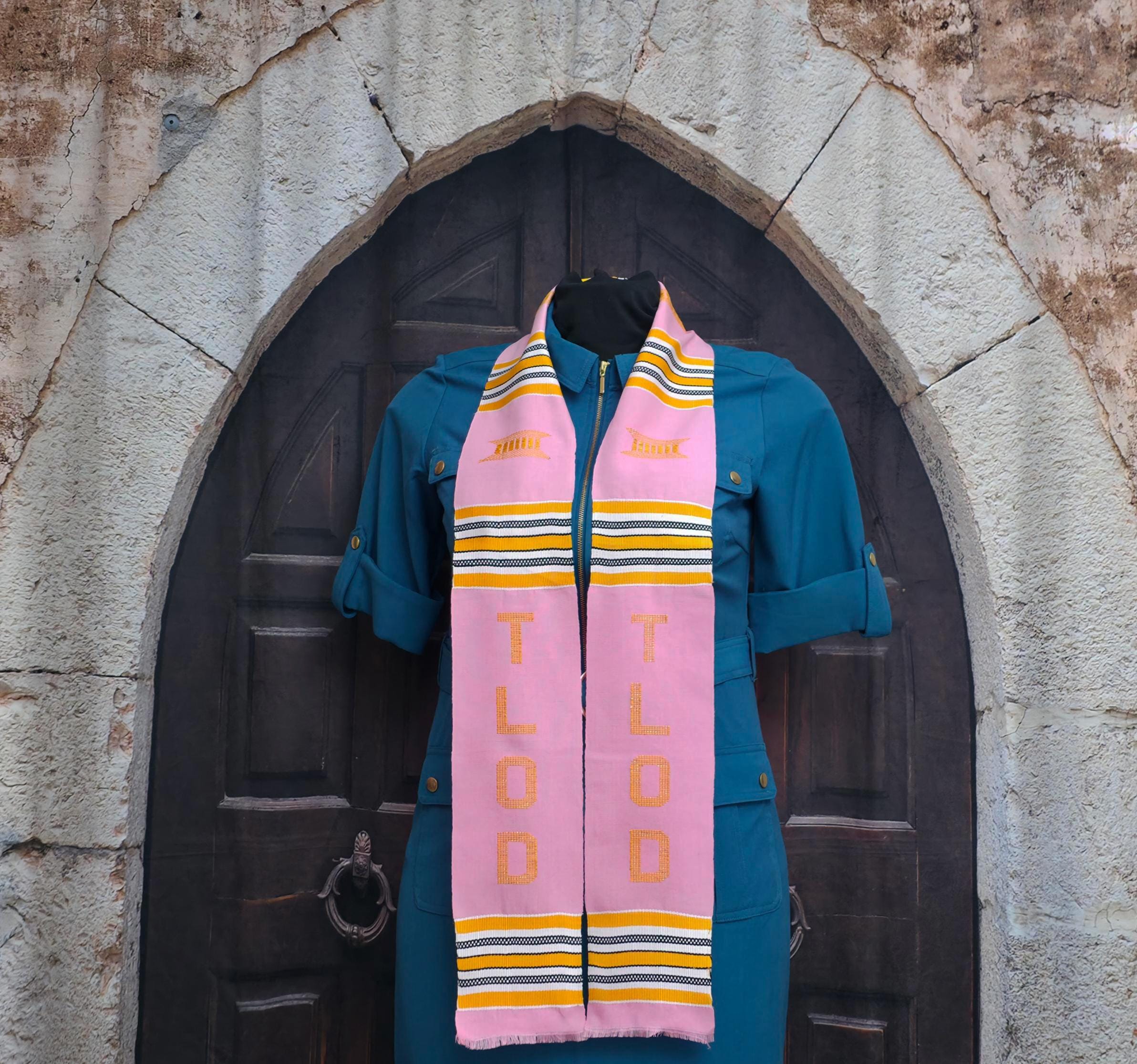 TLOD White and Pink Kente Stoles