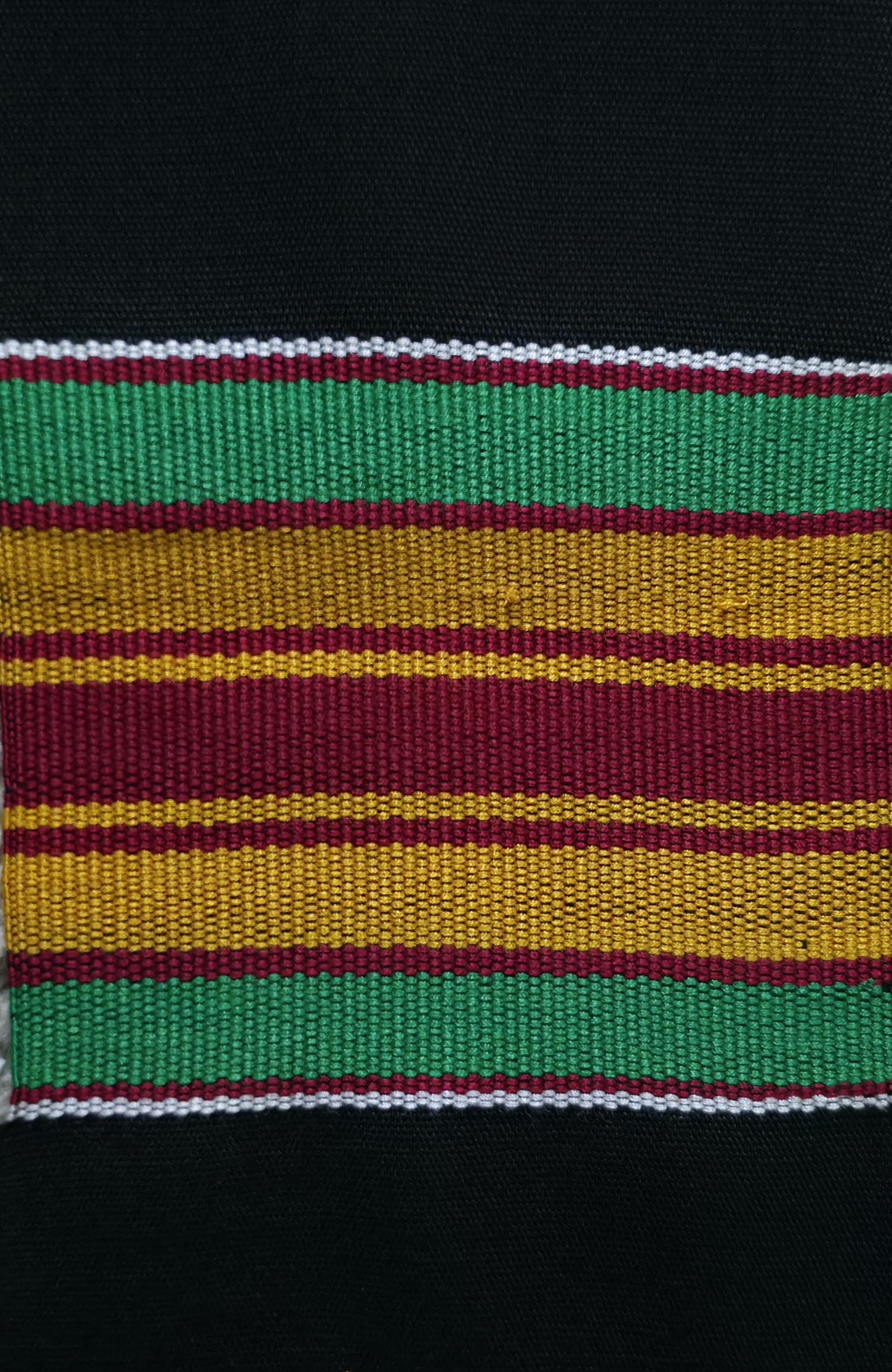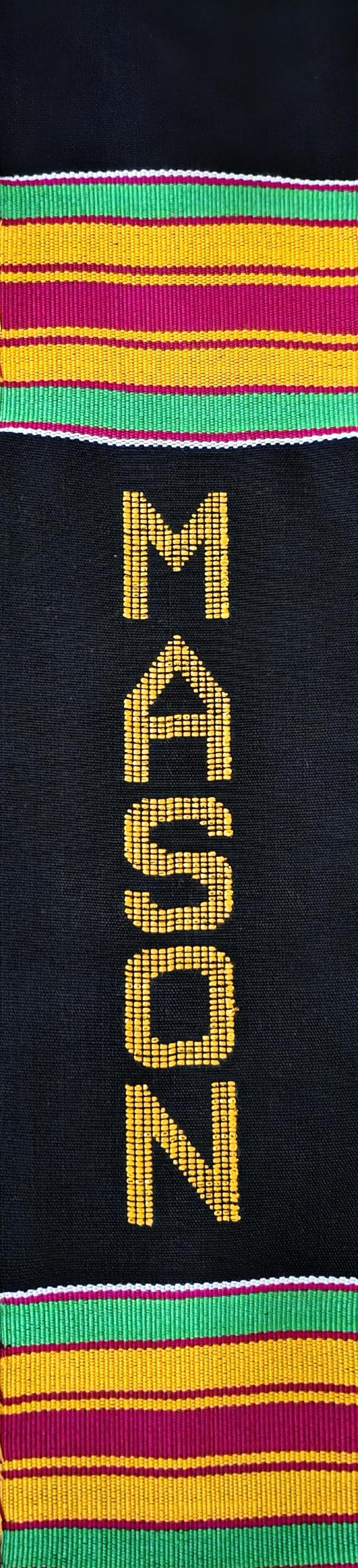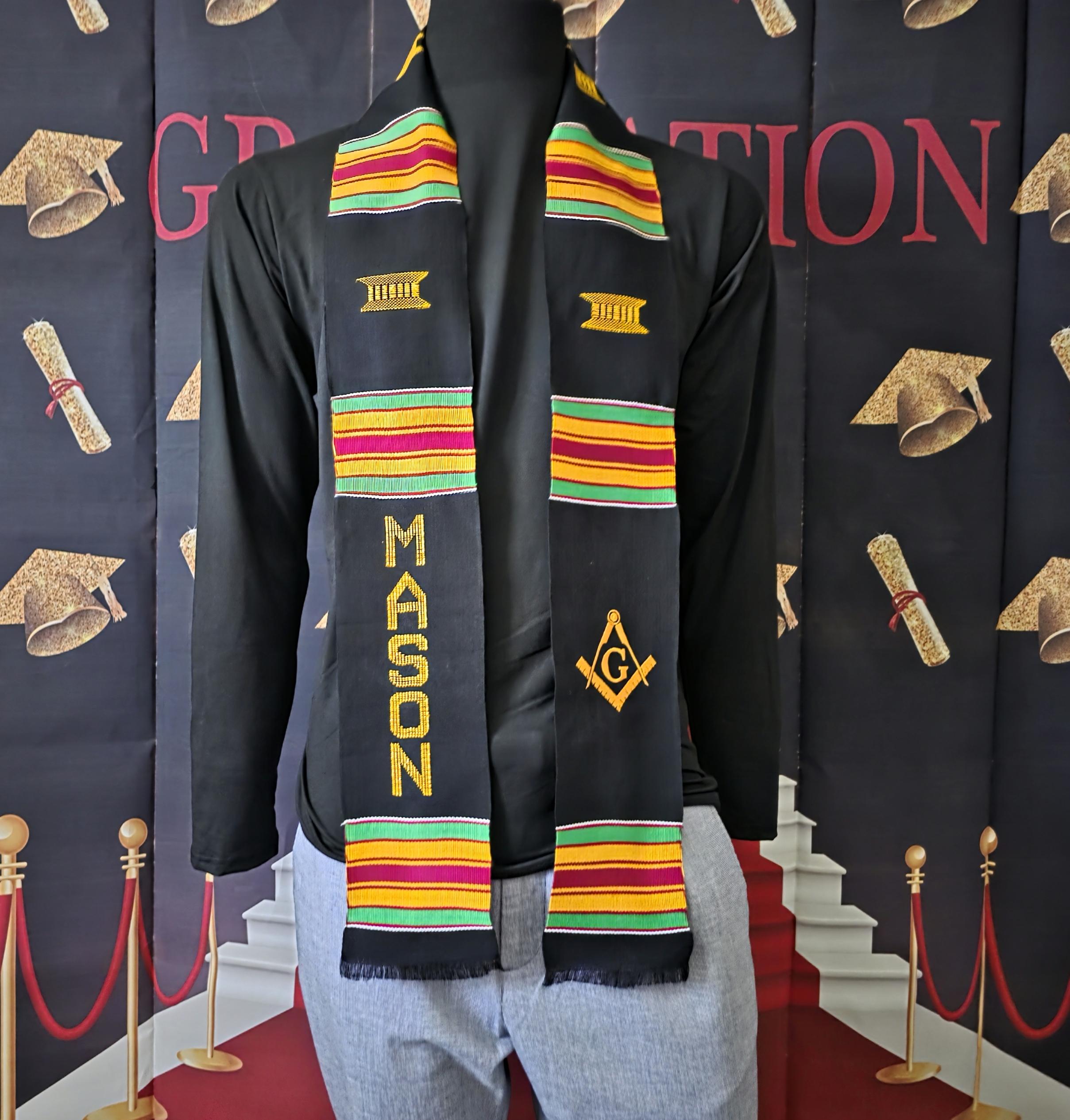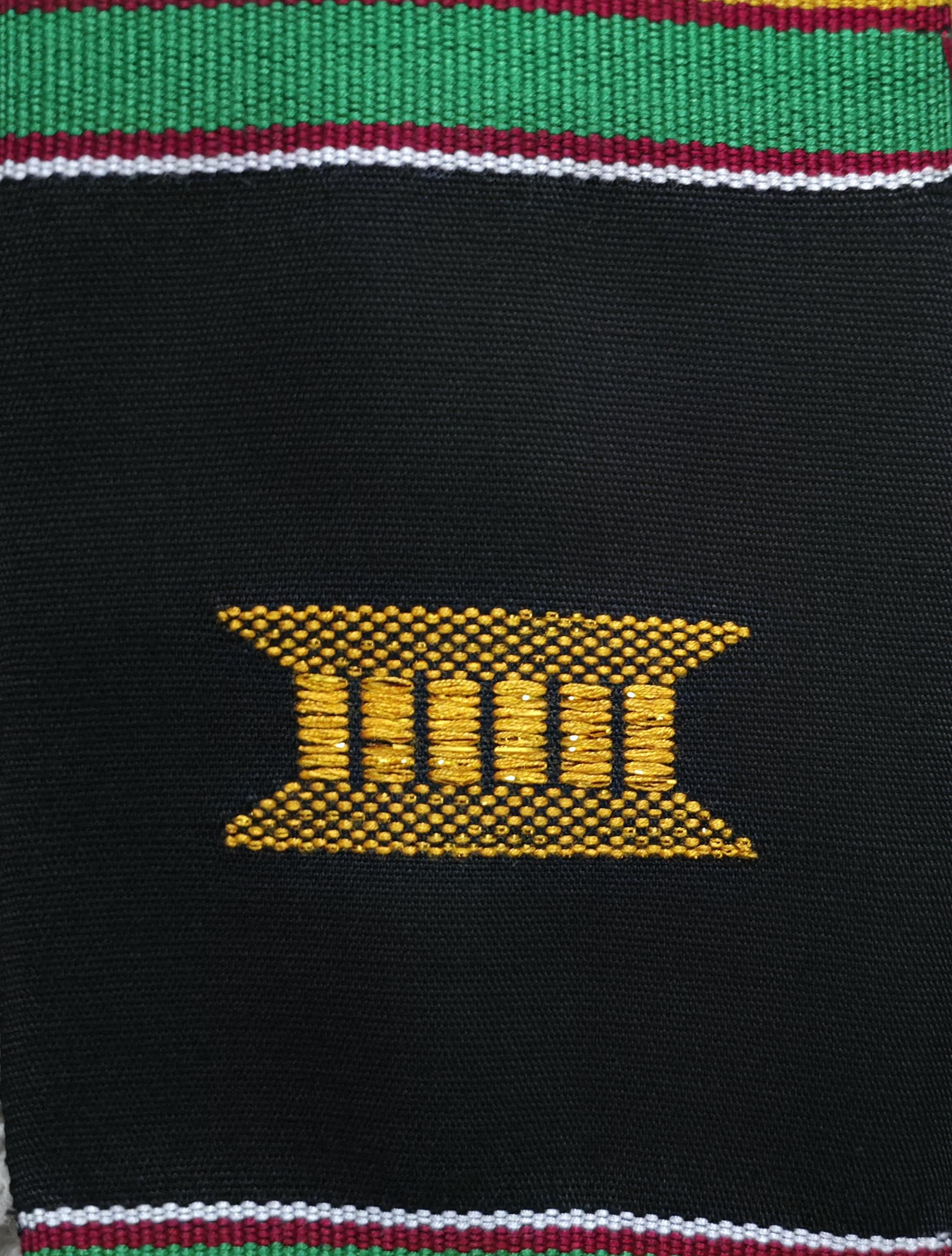 Traditional black Mason kente stoles.
