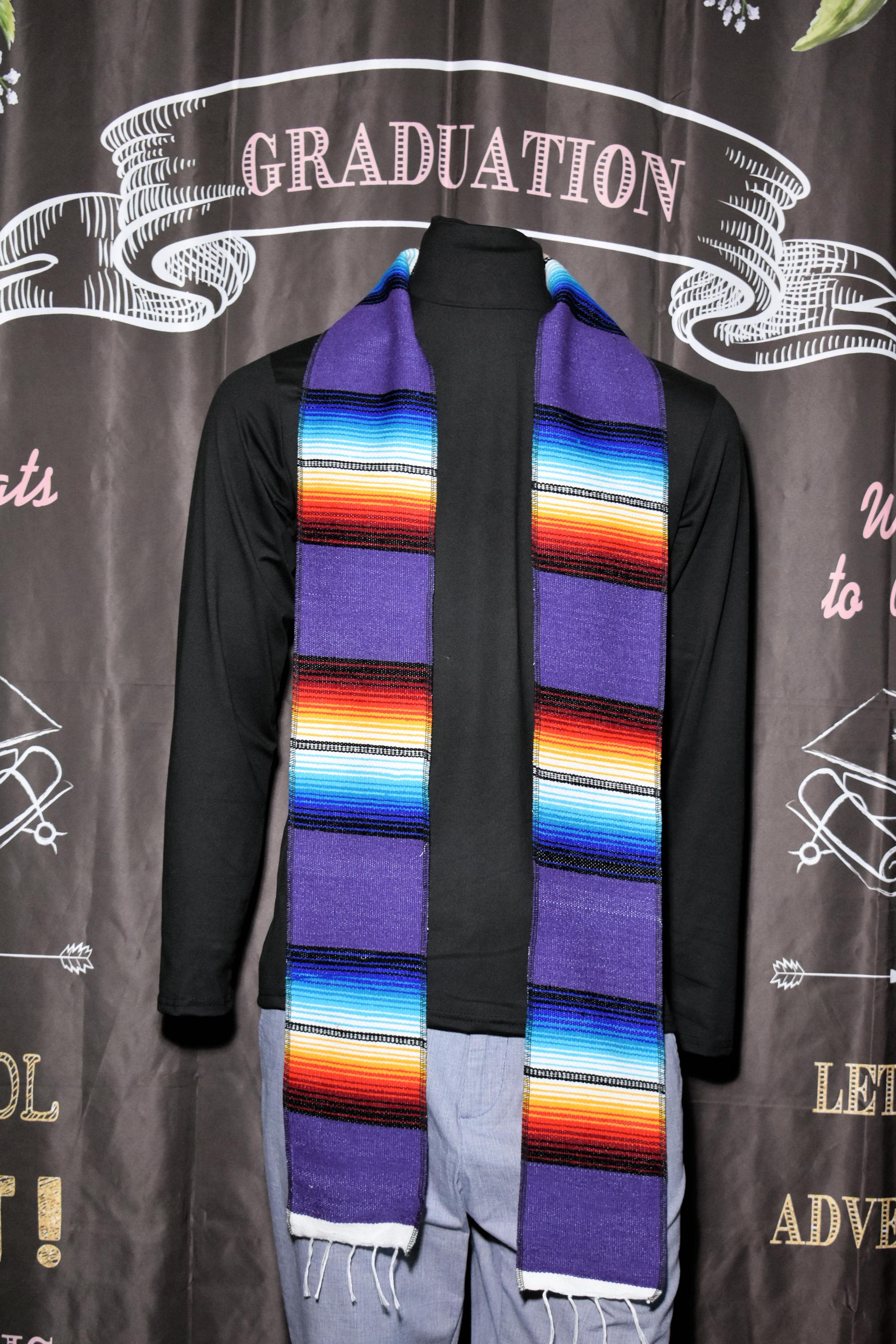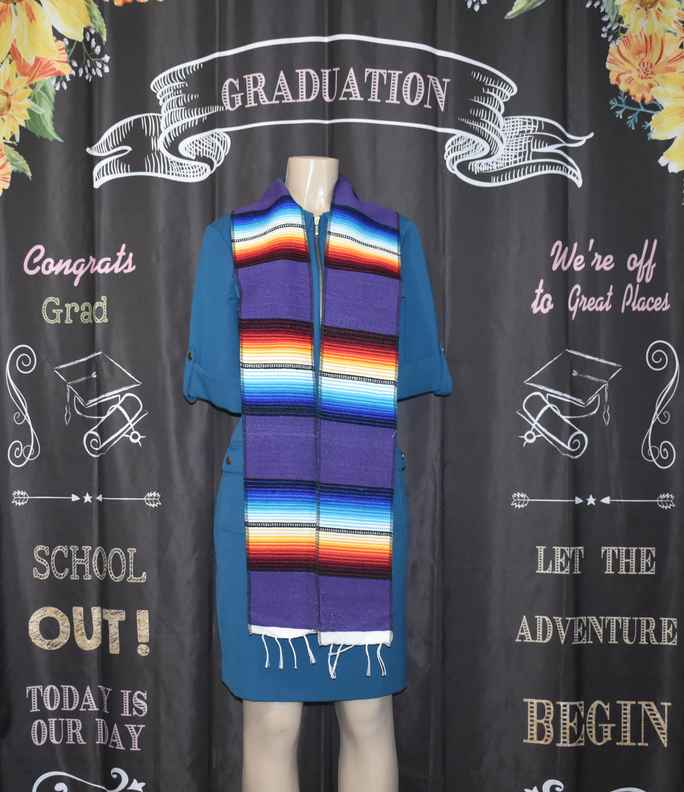 NOTE: USPS Ground Advantage is the slowest, cheapest and delivery days is NOT GUARANTEED. Normally takes 4-9 days for packages to be DELIVERED. Please take note.Purple Serape Graduation Scarves.Made in Mexico.76" x 5".