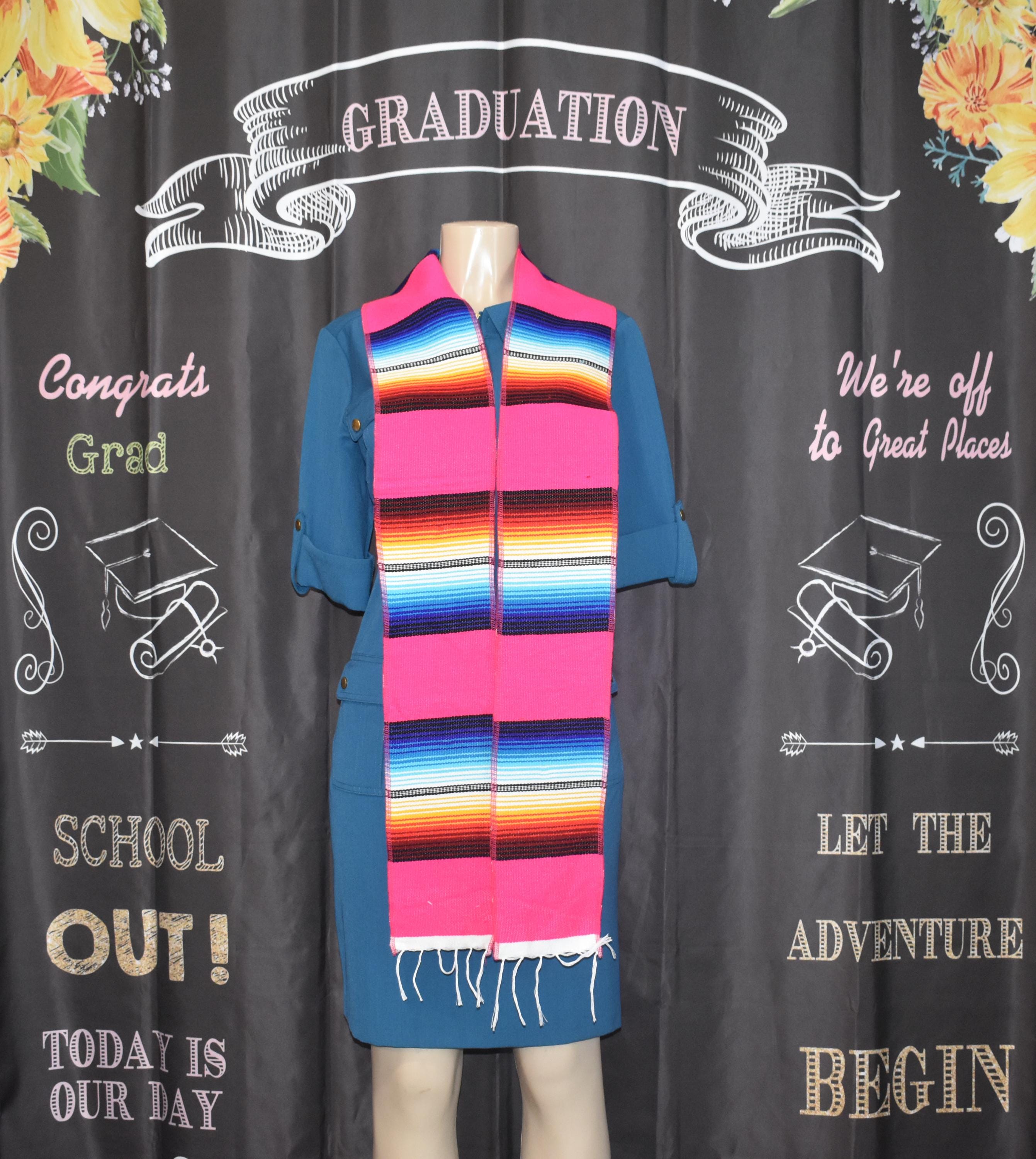 NOTE: USPS Ground Advantage is the slowest, cheapest and delivery days is NOT GUARANTEED. Normally takes 4-9 days for packages to be DELIVERED. Please take note.Pink Serape Graduation Scarves.Made in Mexico76" x 5".
