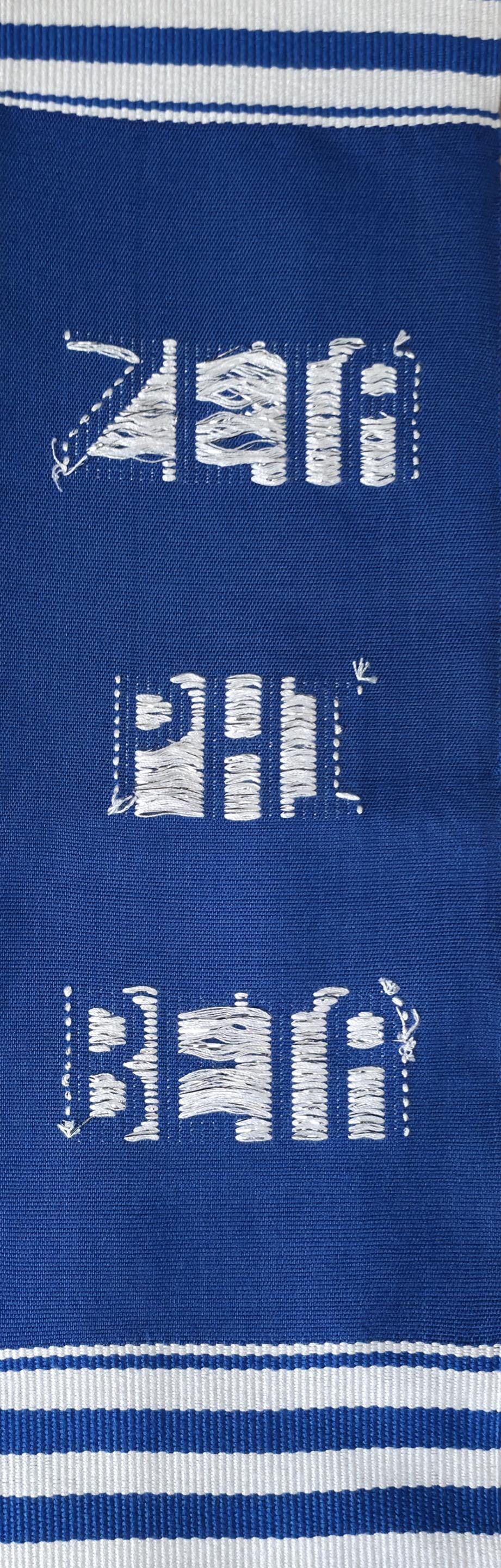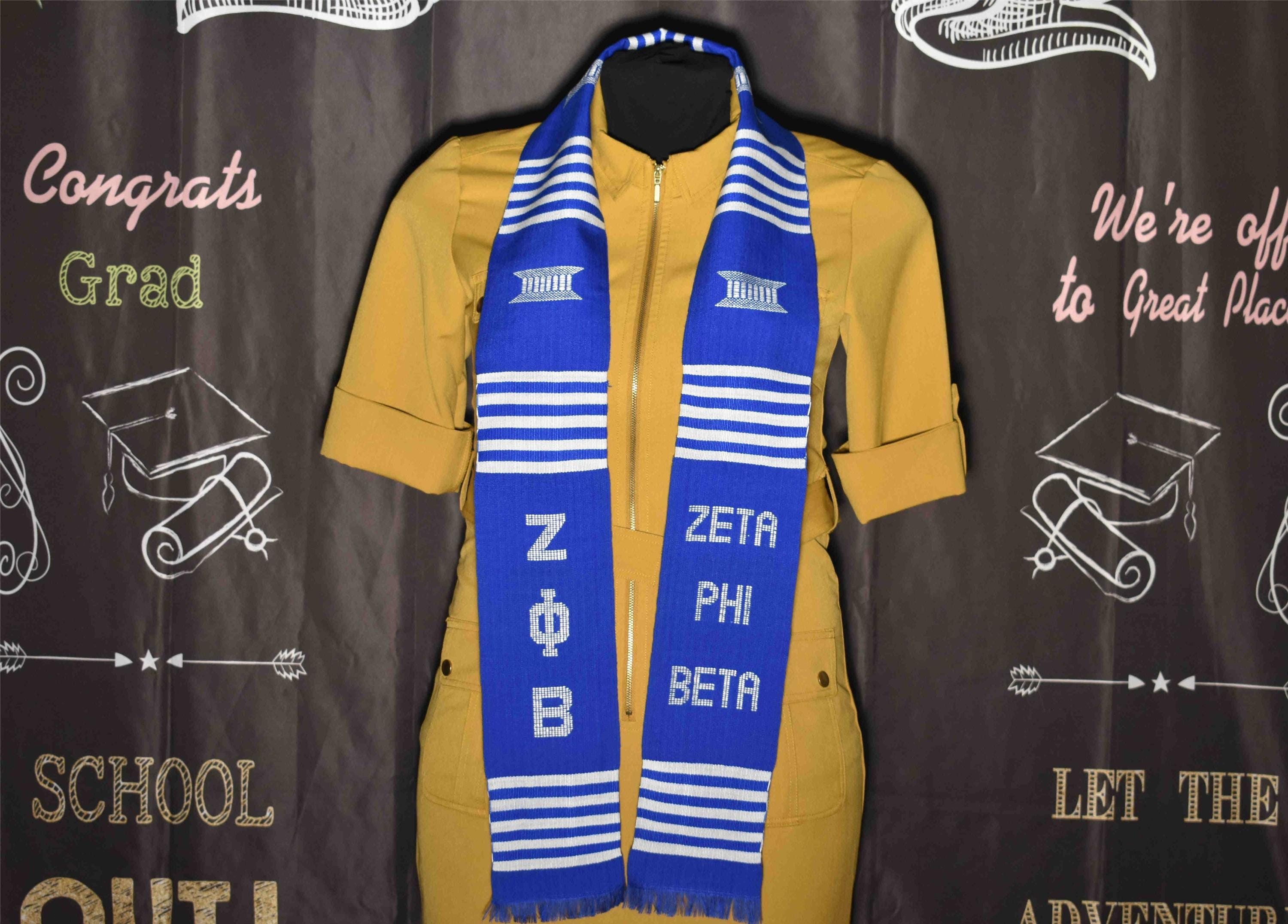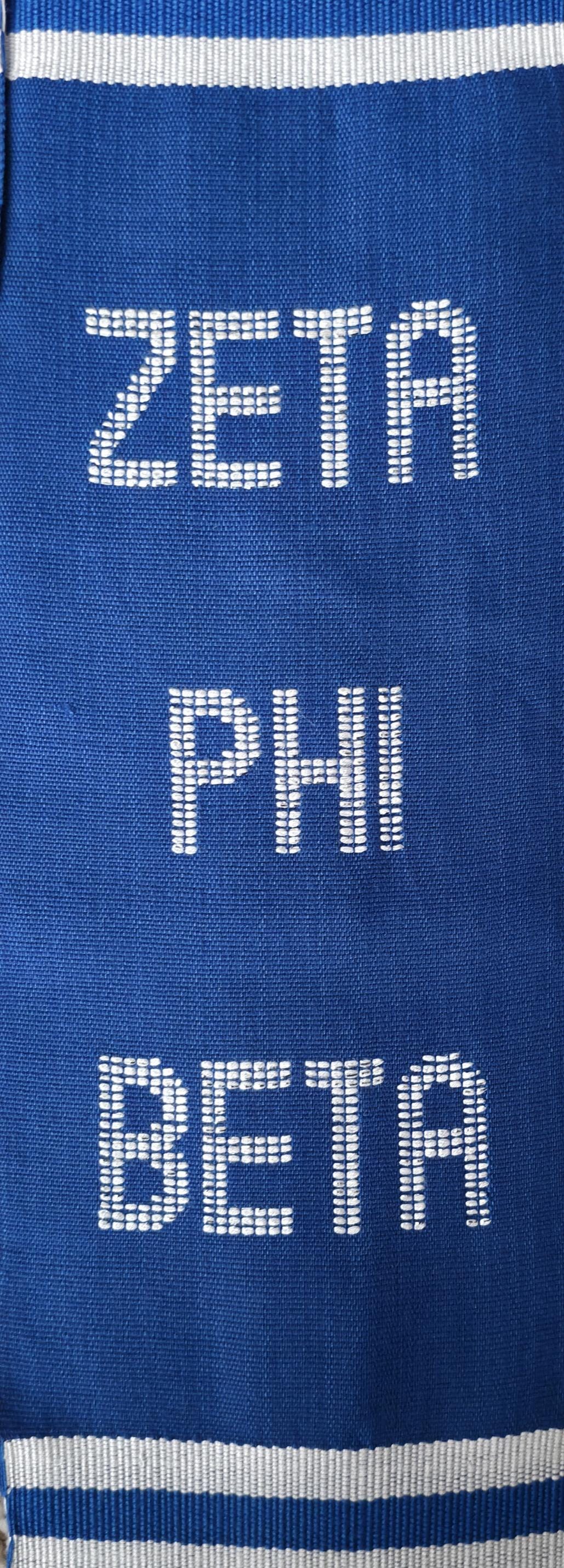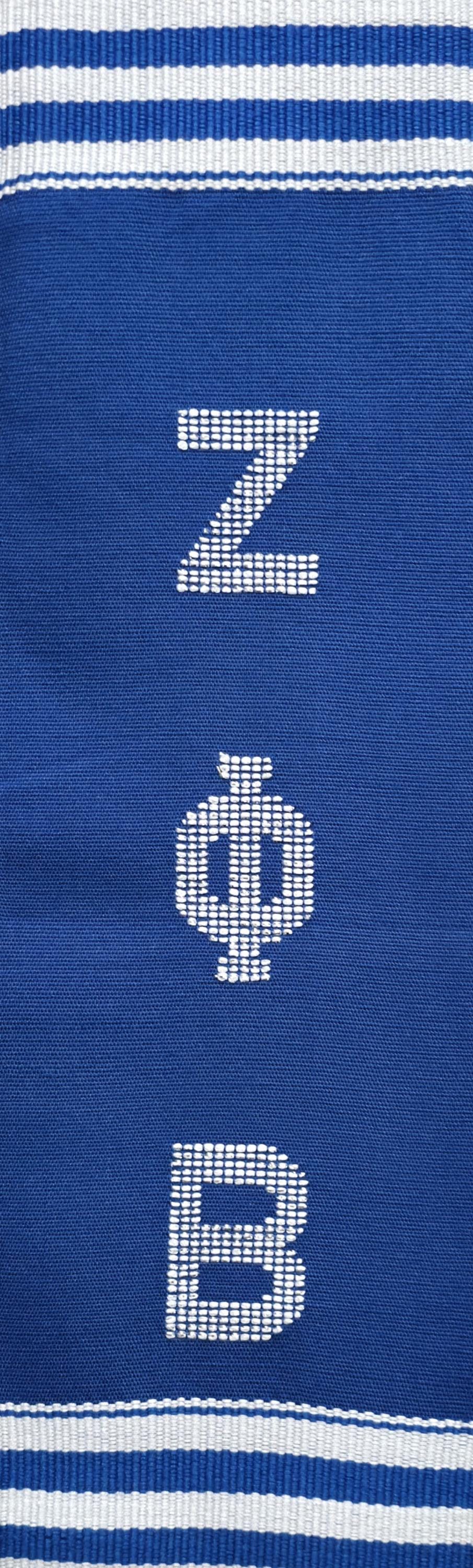 Blue and White Zeta Phi Beta and ΖΦΒ Kente Stoles.