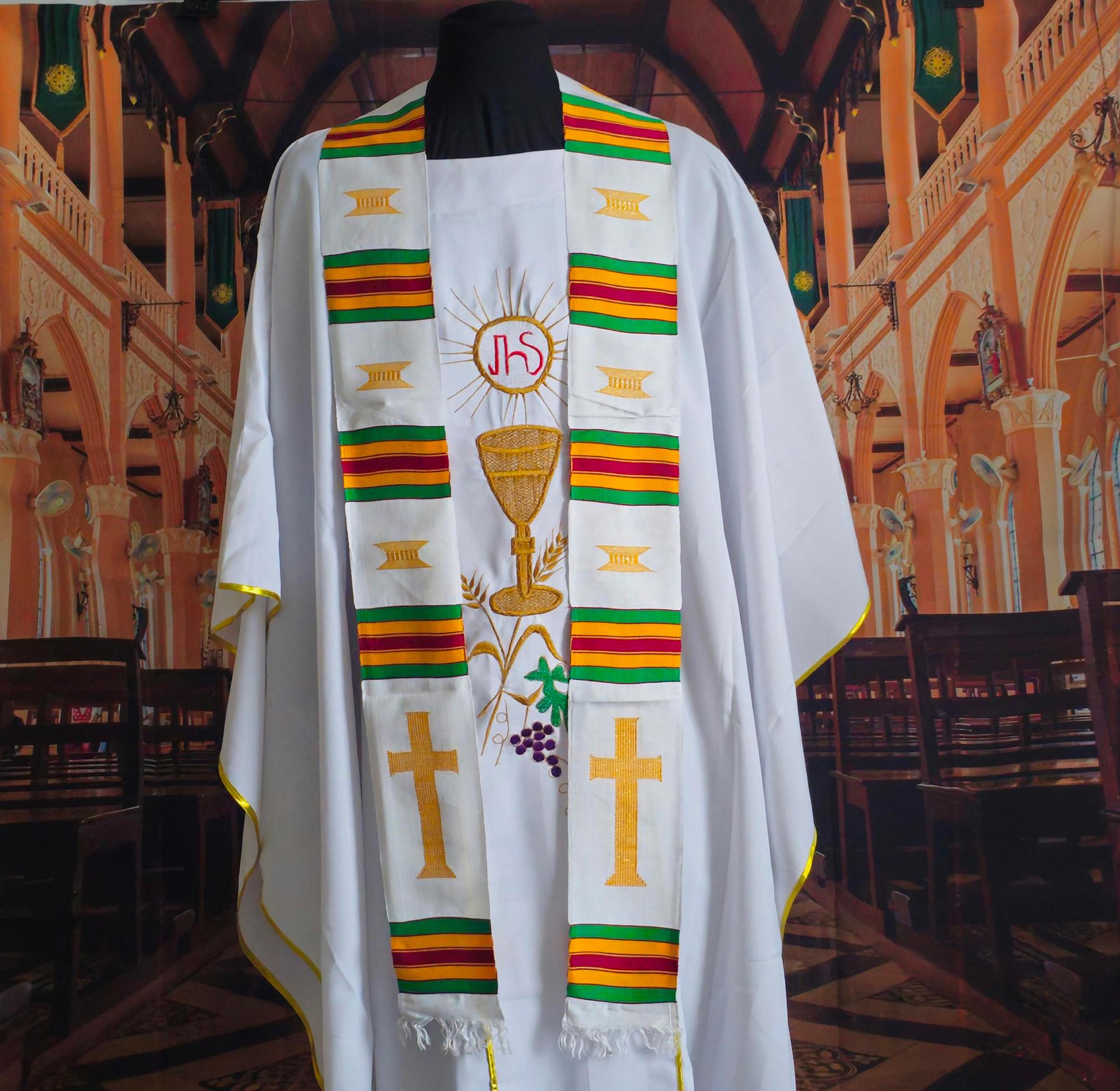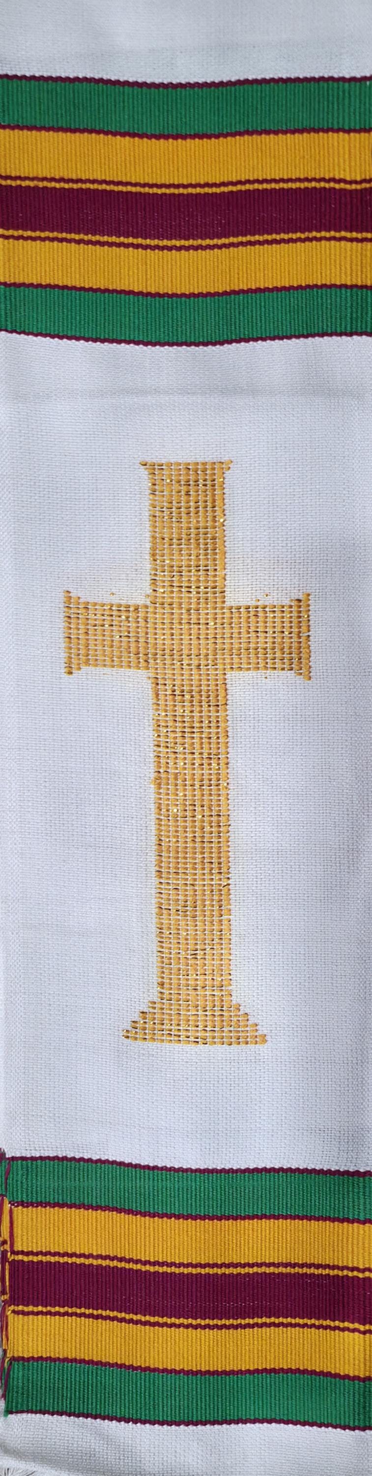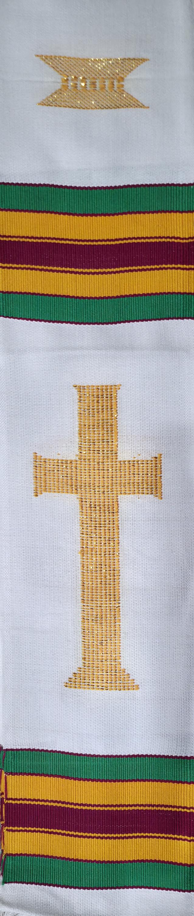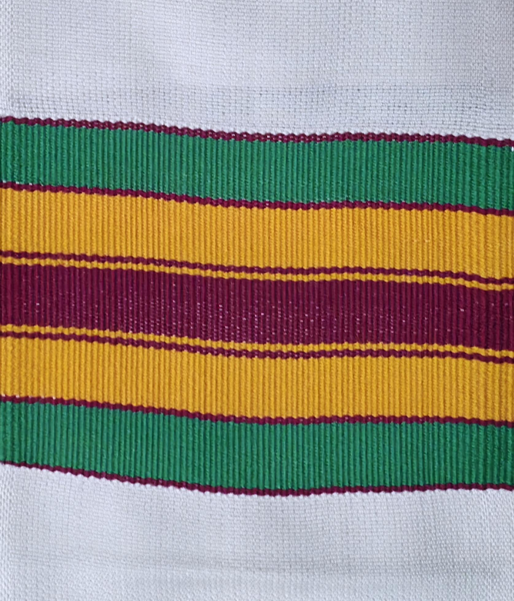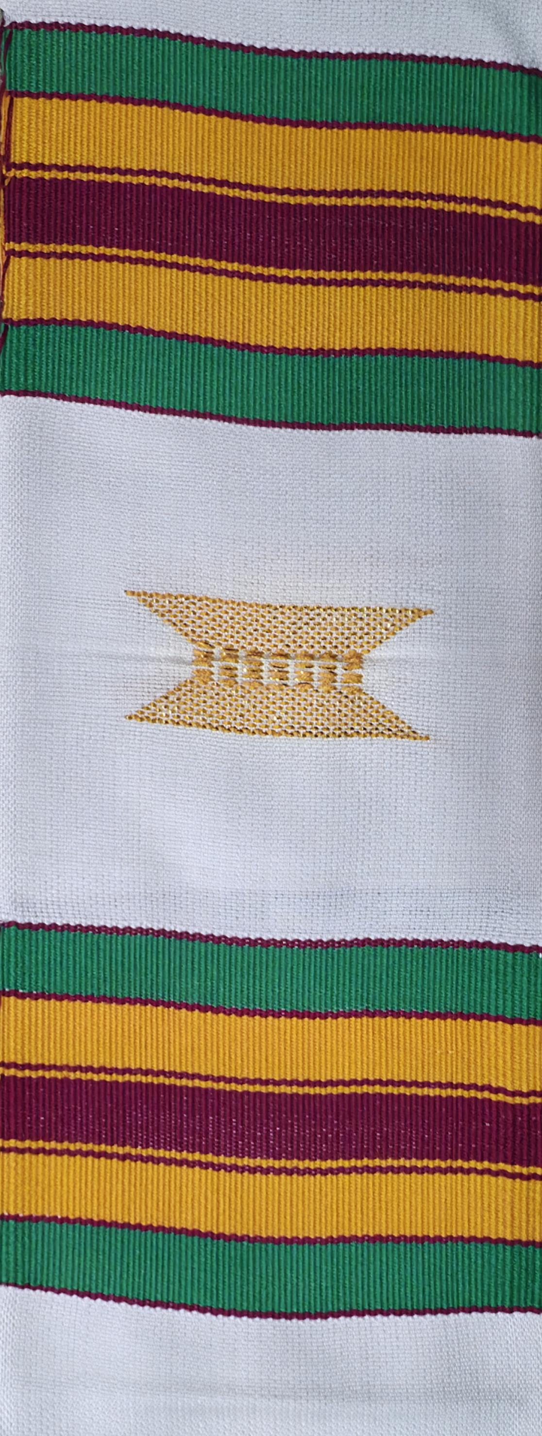 100"L x 4.5"W.All kente stoles measurements are approximate. Since they are handwoven by numerous weavers/looms, it is impossible for all to be exactly the same length and width.