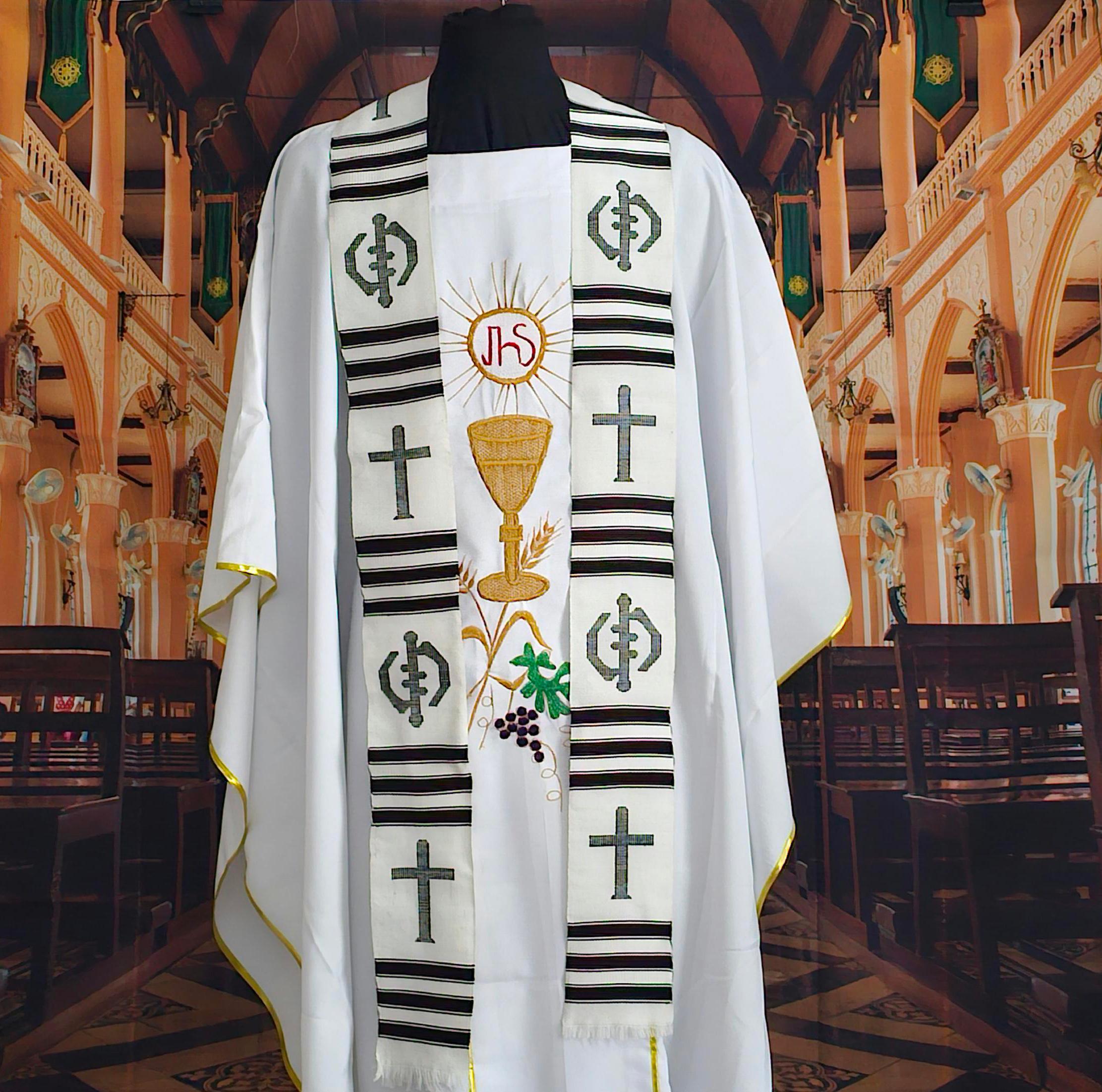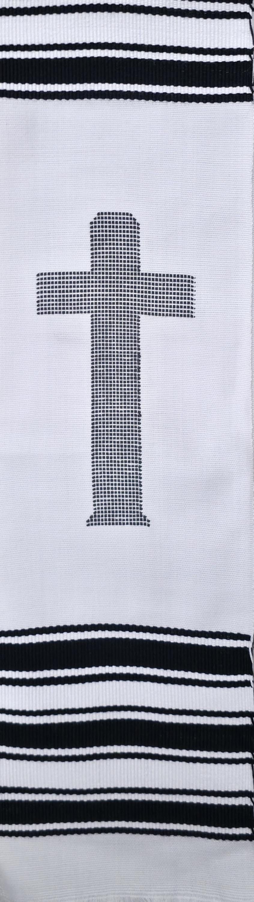 White and Black Kente Clergy Length stoles.