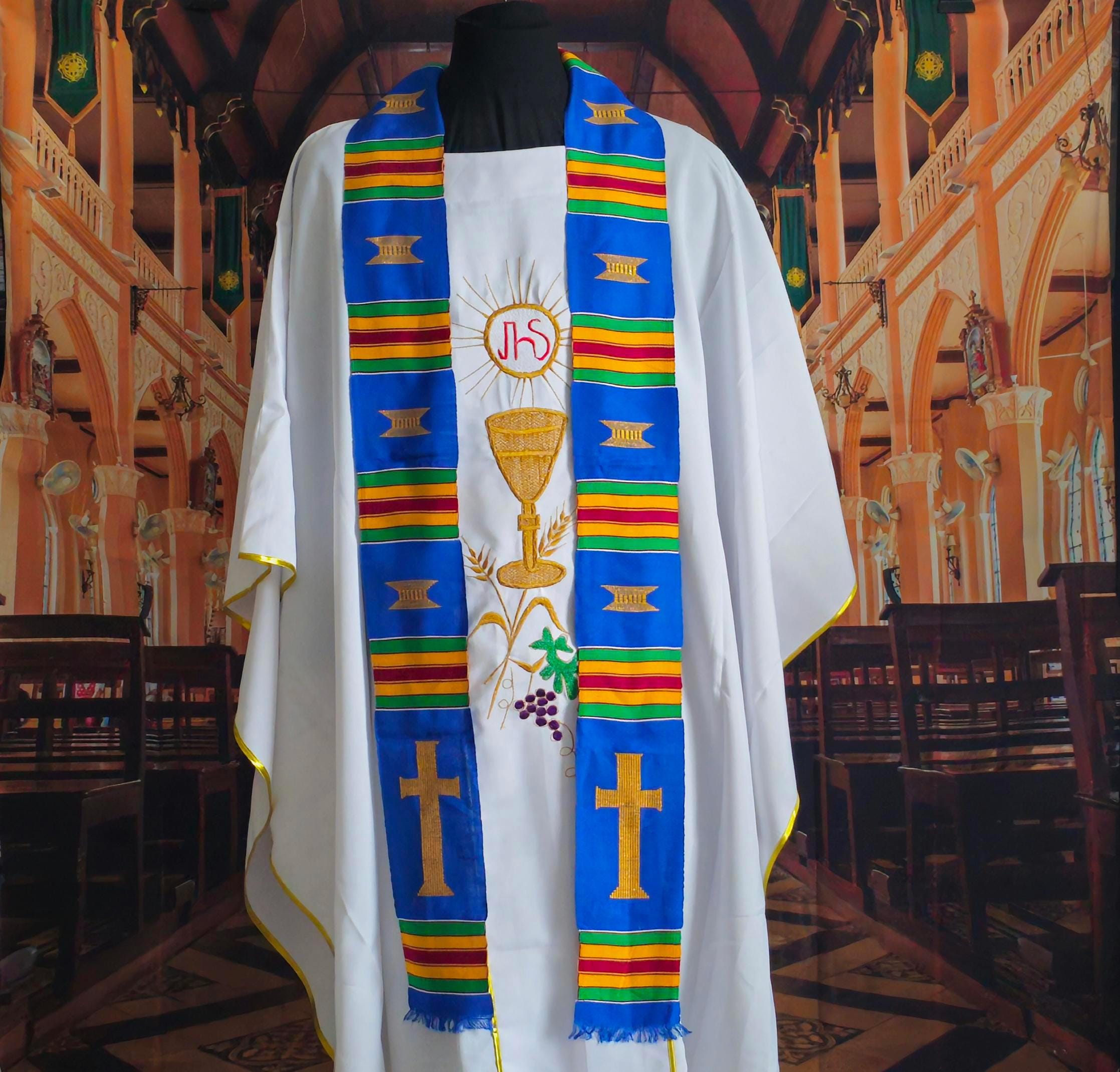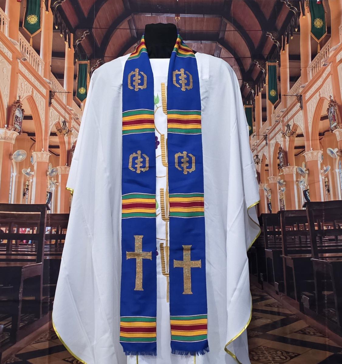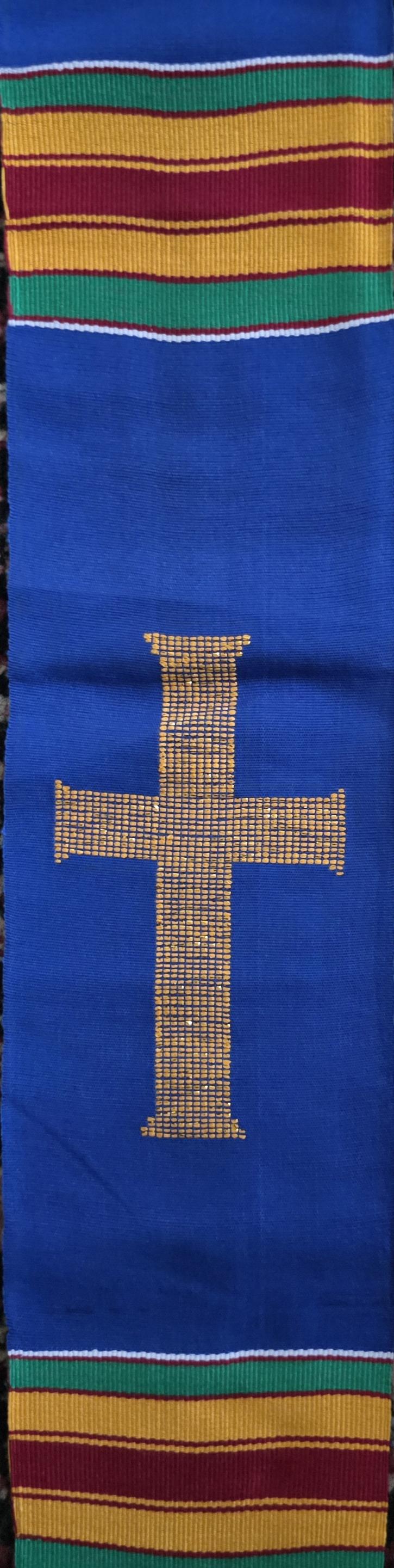 Traditional Blue Kente Clergy Length stoles. Handwoven in Ghana.