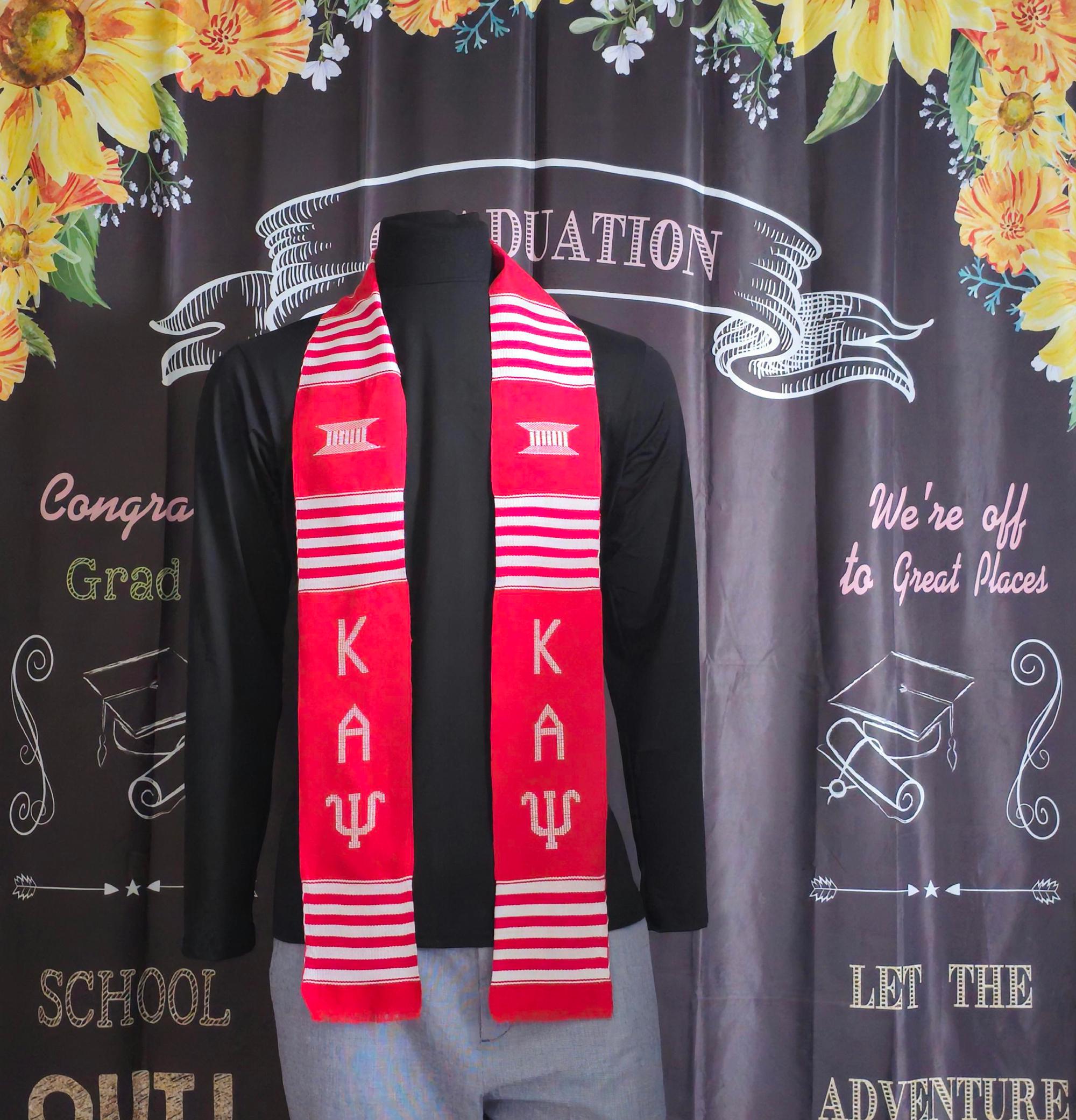 Red and White Kappa Alpha Psi Kente Stoles.Rich and Vivid Colors. Handwoven in Ghana.72" x 4.75".