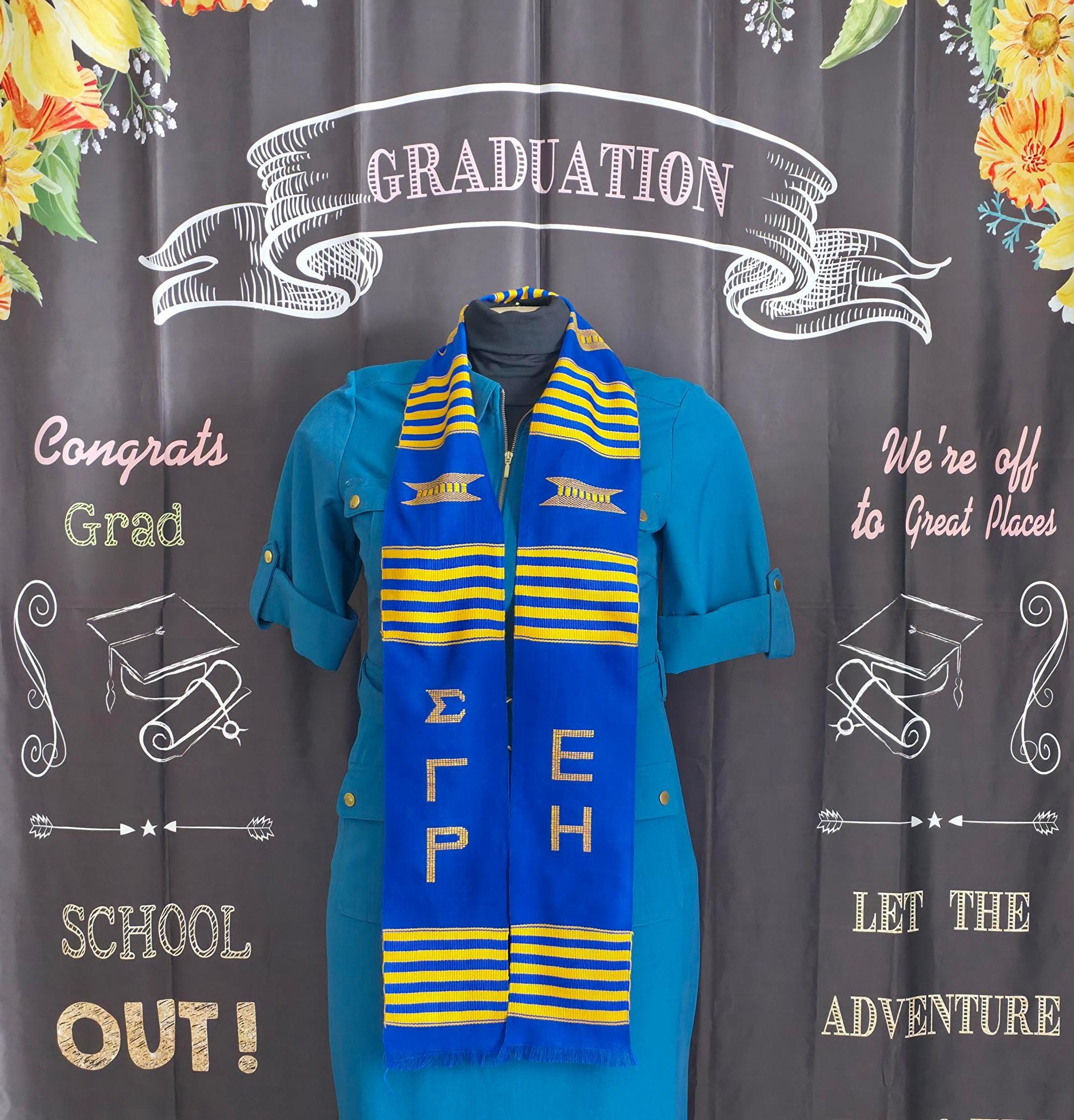Sigma Gamma Rho Sorority Blue and Gold Kente Stoles.