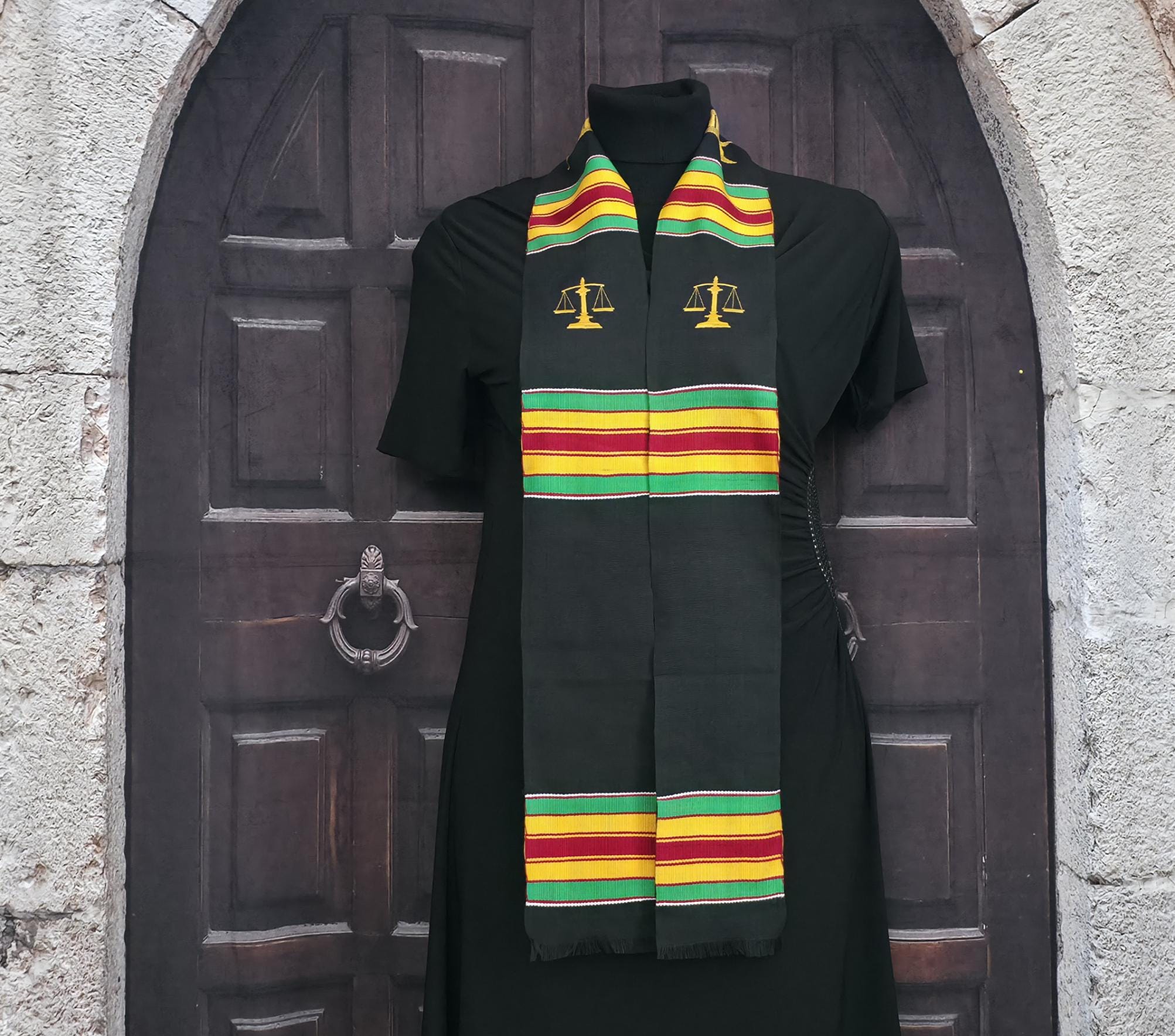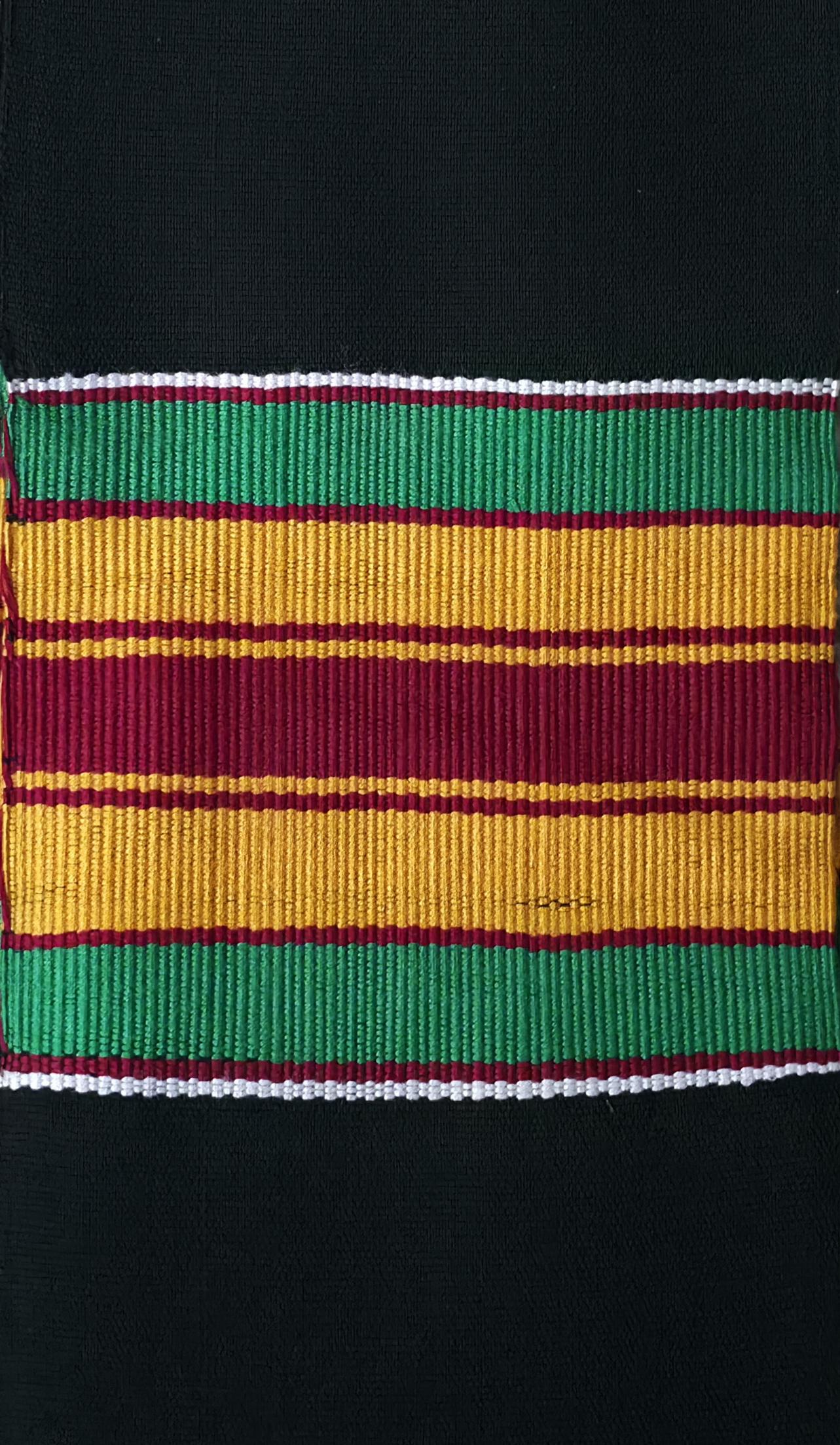 Please note that all custom kente orders are created using an embroidery machine, which means they will have a different appearance compared to traditional woven lettering.