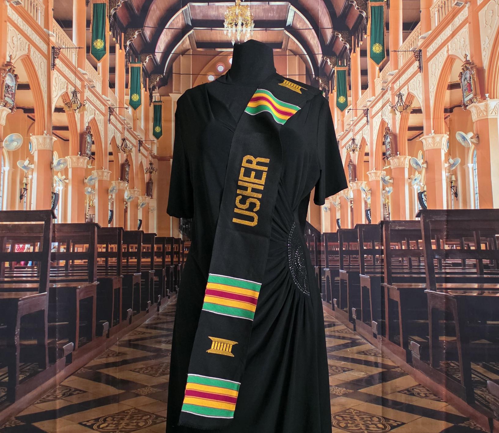 USHER Black Banner Kente Cloth Stoles.