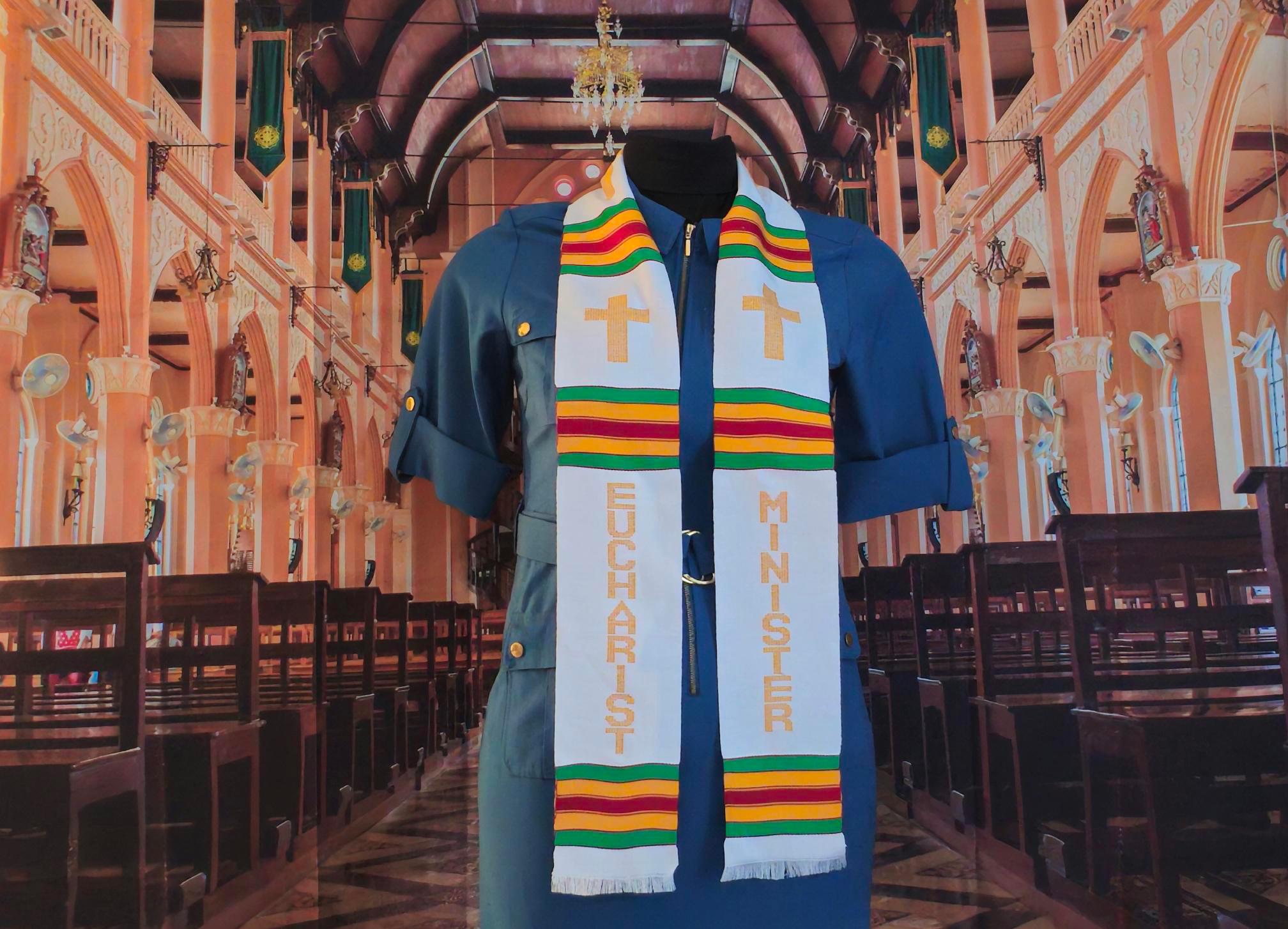 EUCHARIST MINISTER White Kente Cloth Stoles.