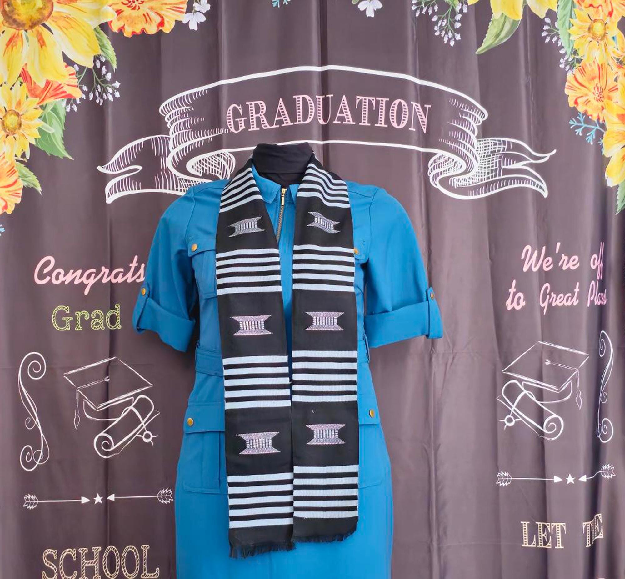 Traditional Black and White Kente Stoles.