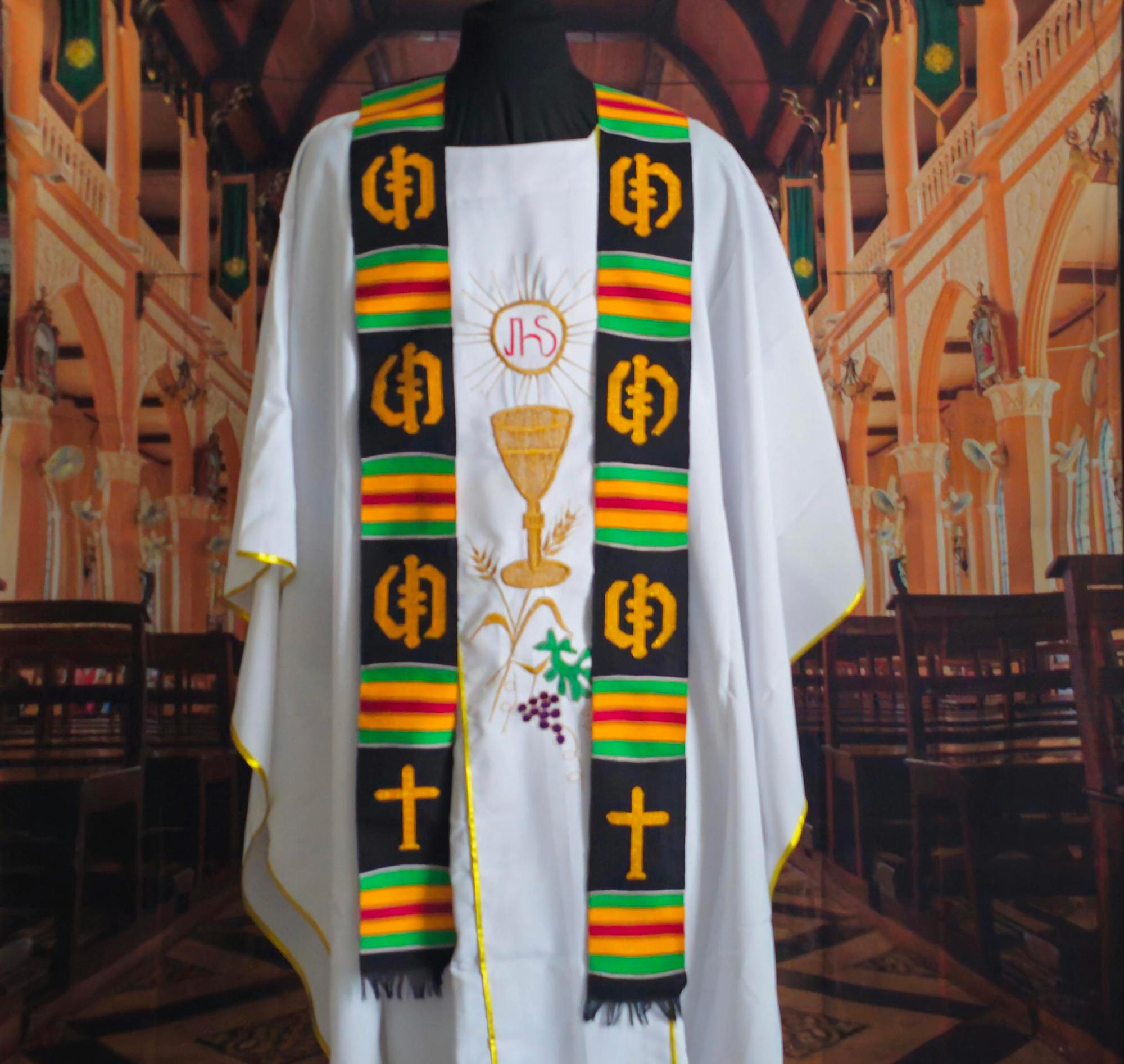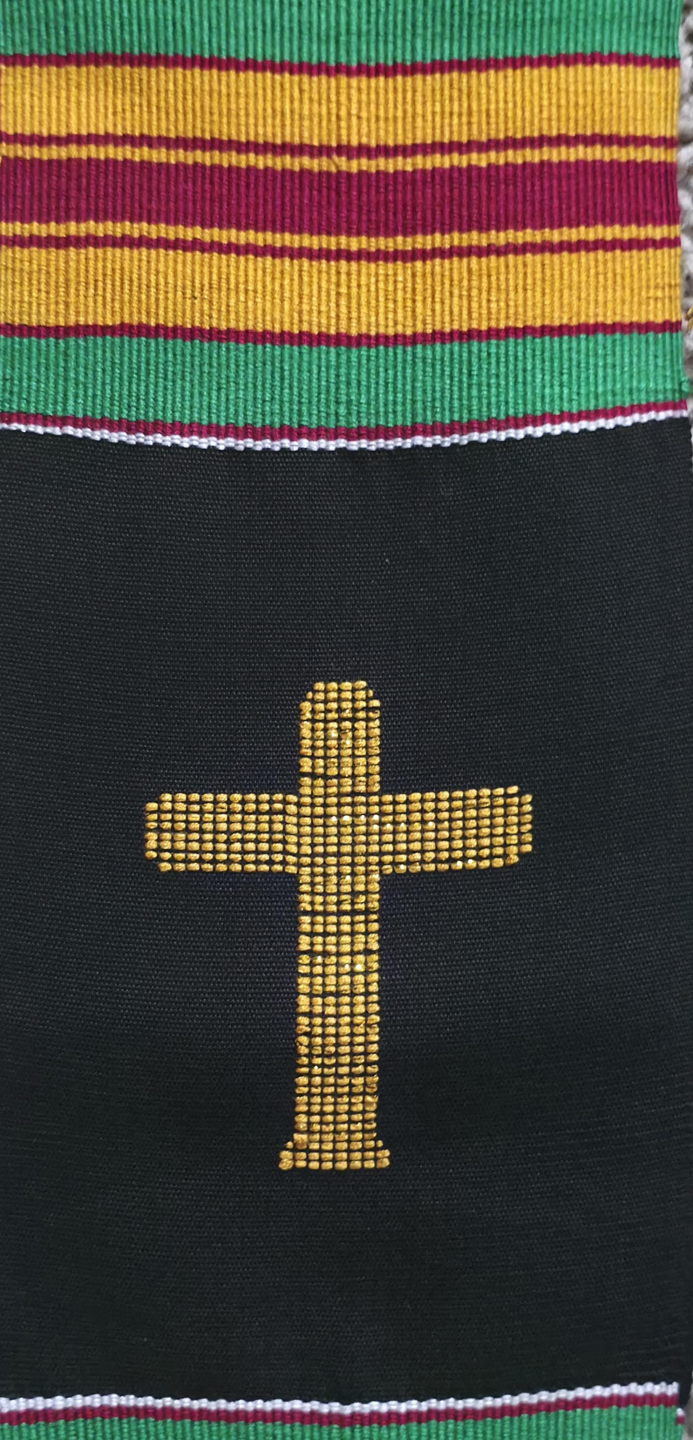 Traditional Black Kente Clergy Length stoles.