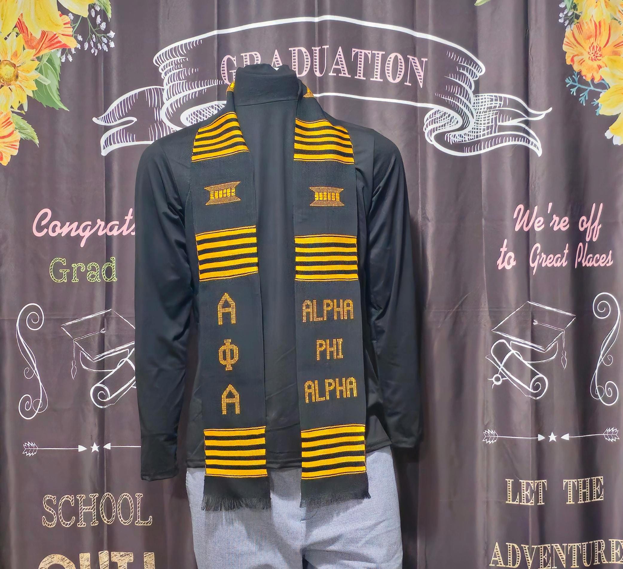 Alpha Phi Alpha and ΑΦΑ Graduation Black Kente Cloth Stoles.