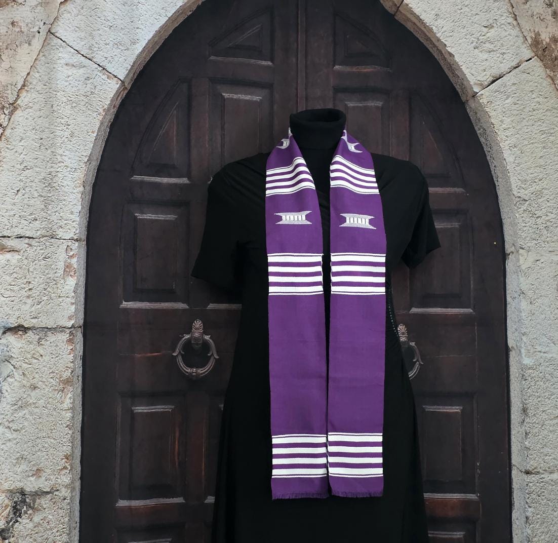 Custom Purple and White Kente Stoles. BLANK