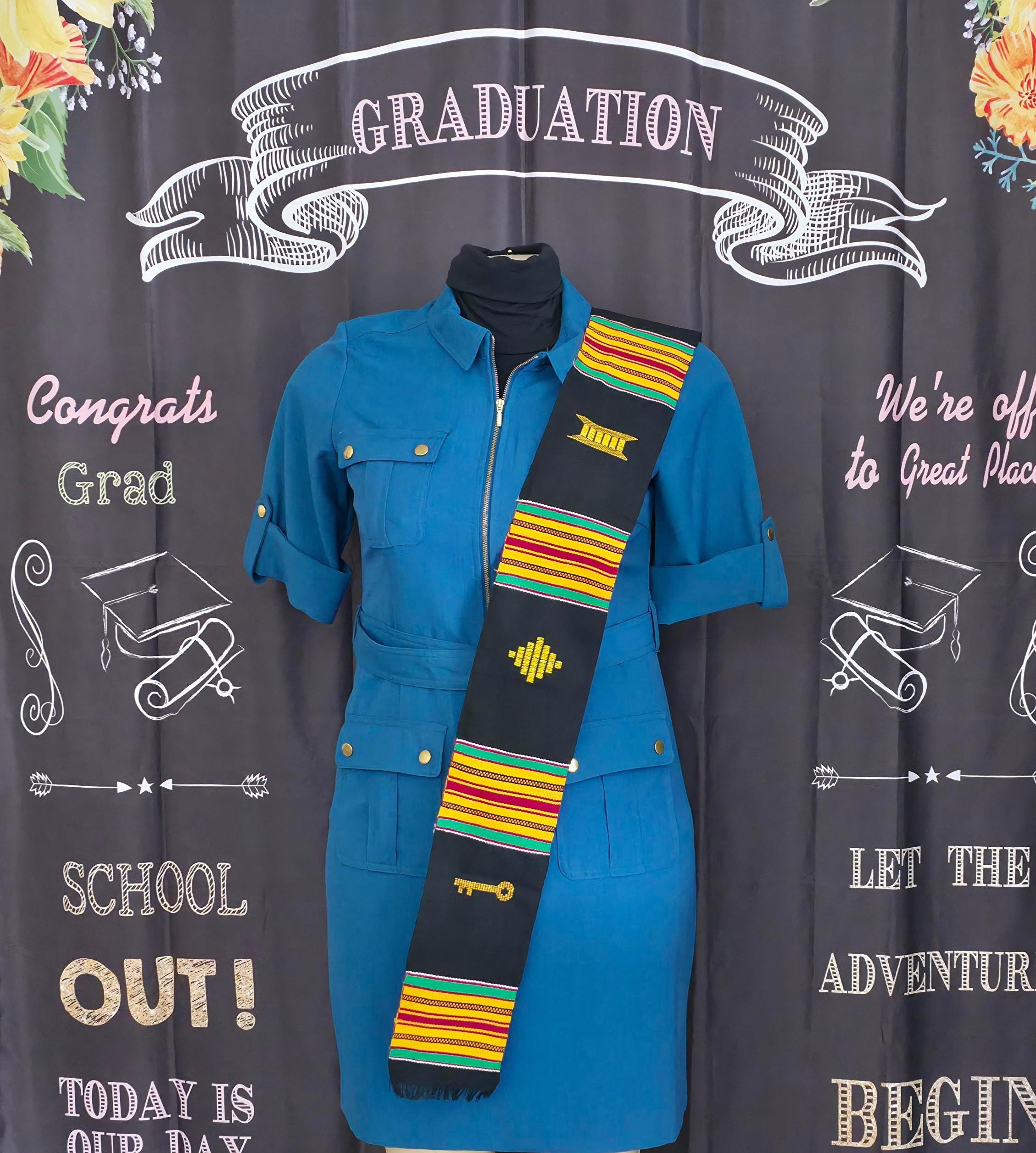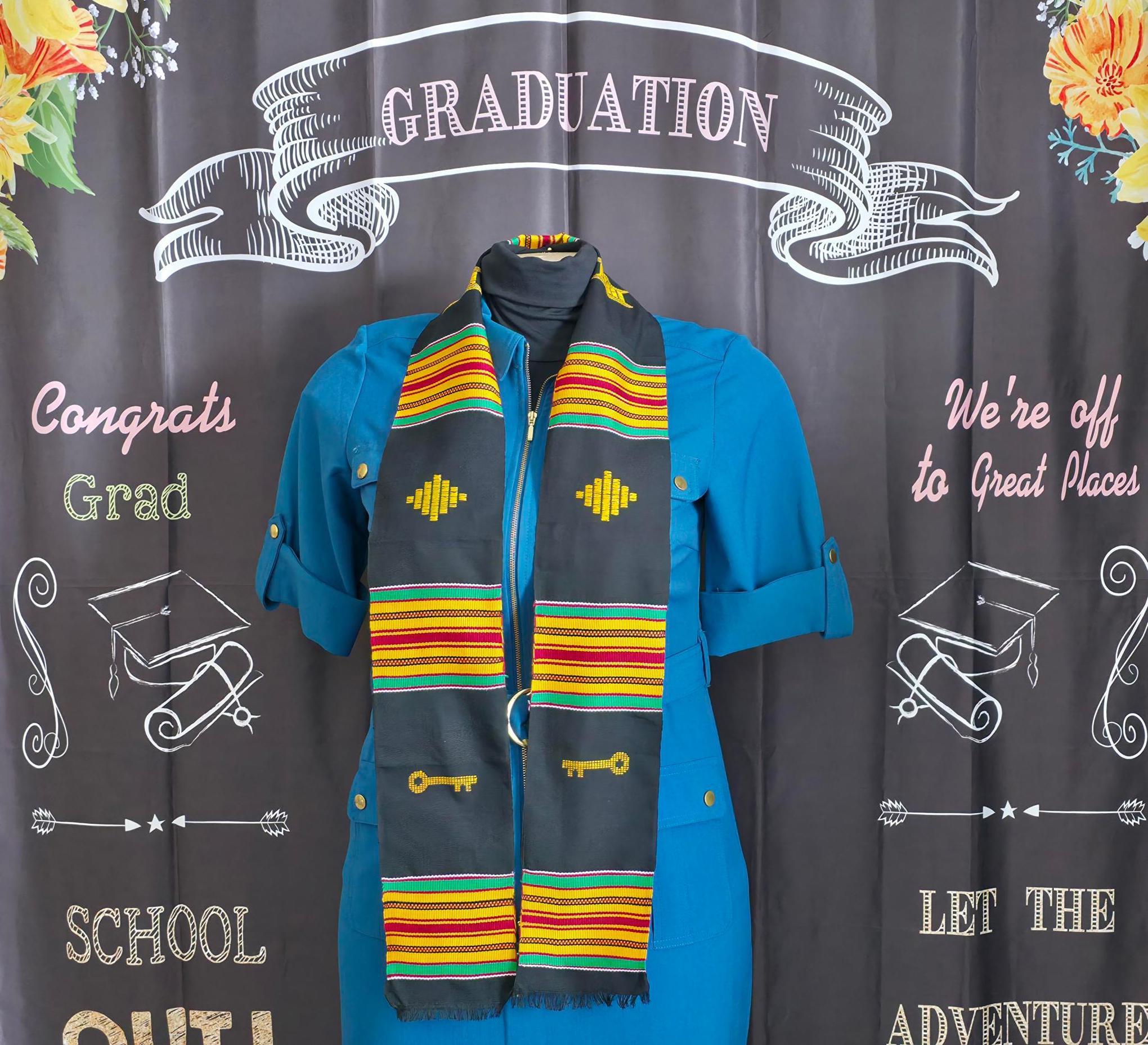 Heritage Black Kente Stoles. Three symbols.