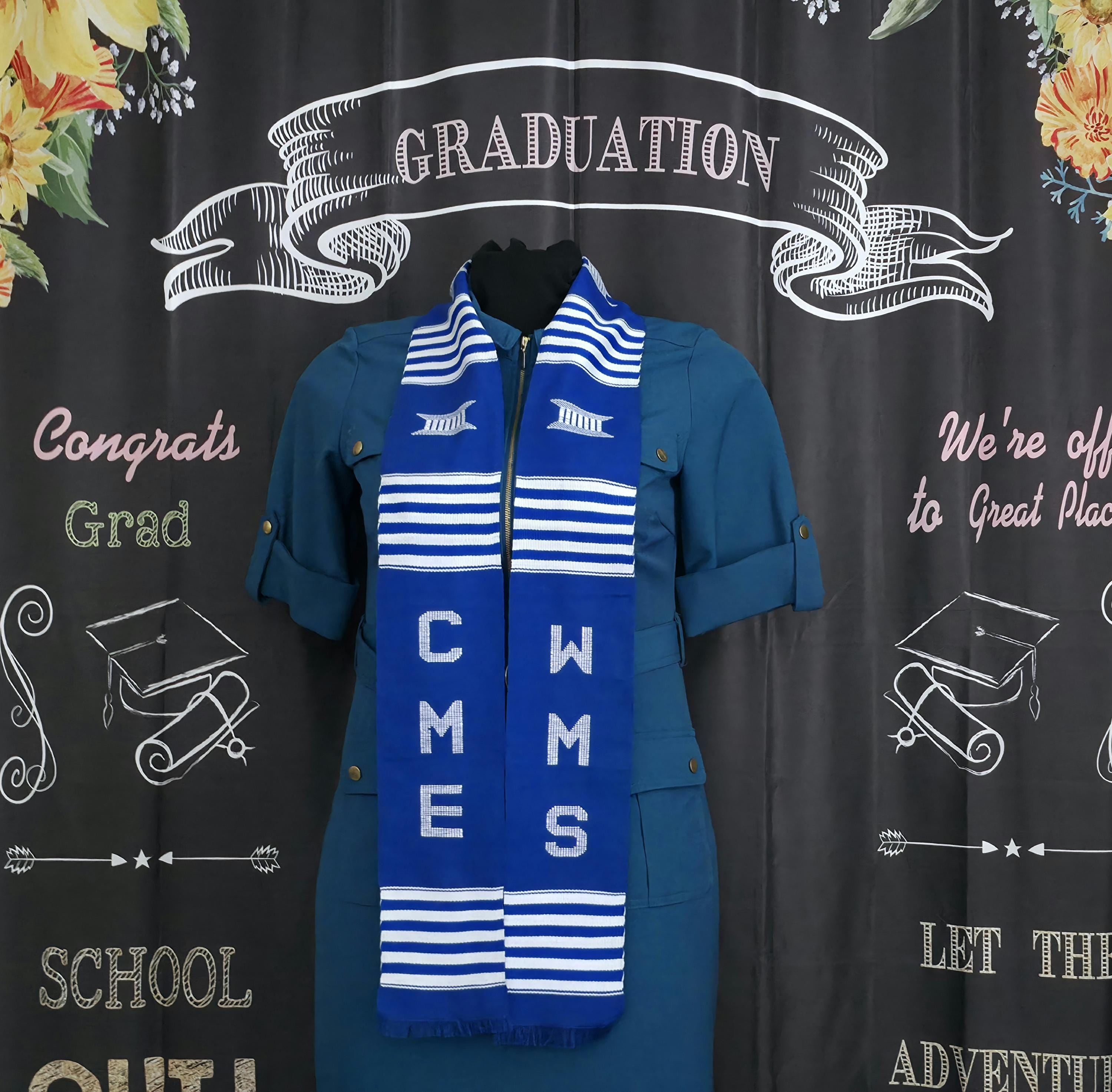 CME WMS Blue and White Kente Stoles.