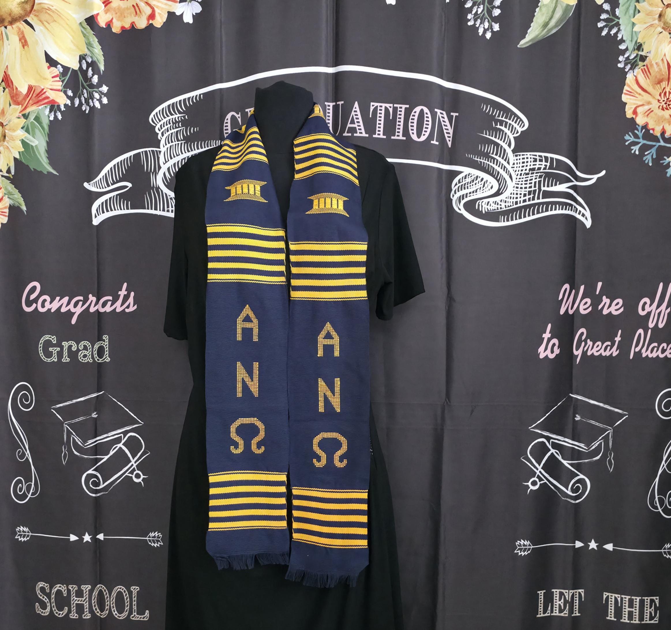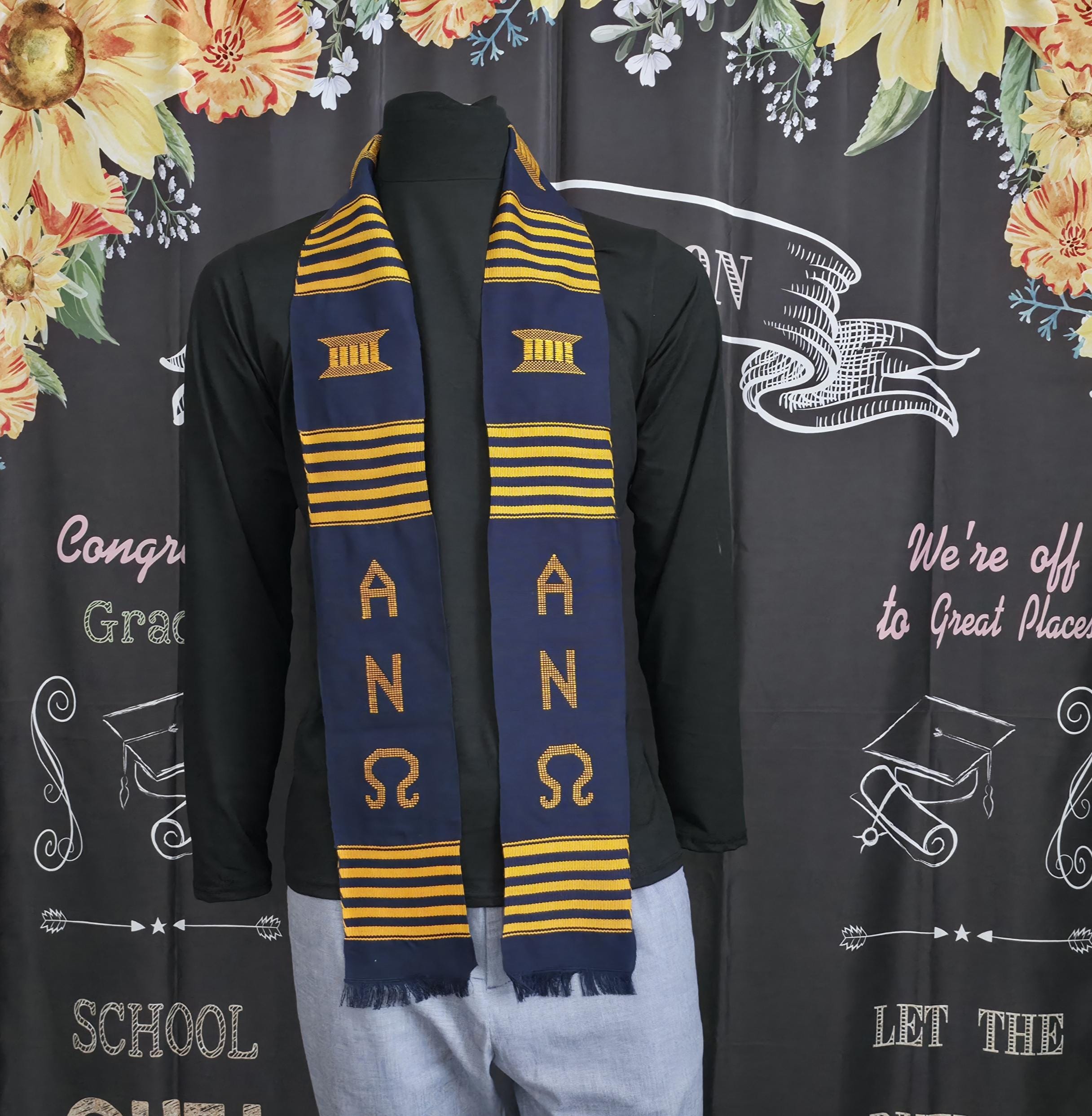 Alpha Nu Omega Navy Blue Kente Stoles.