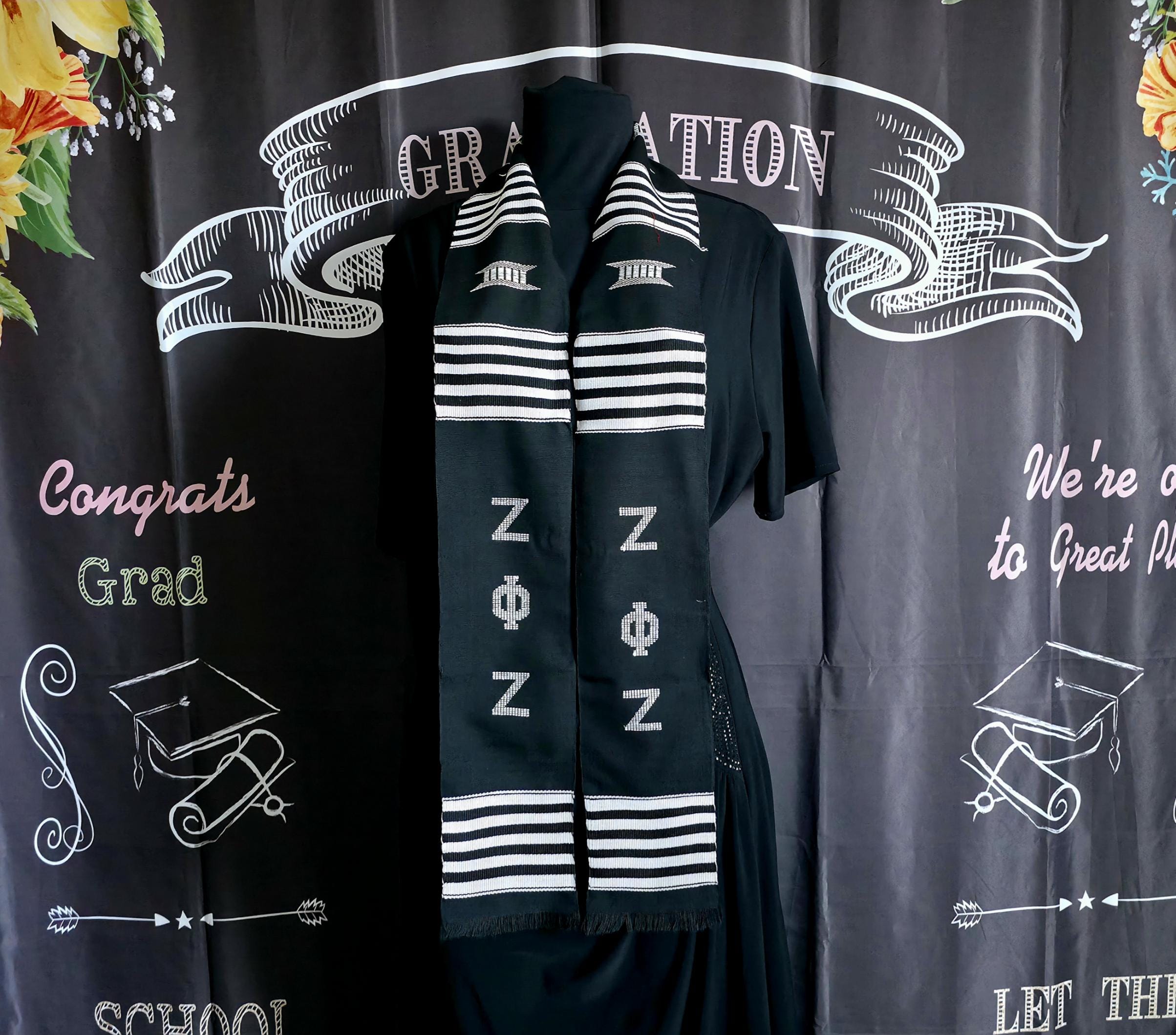 Black and White Zeta Phi Zeta Kente Stoles.