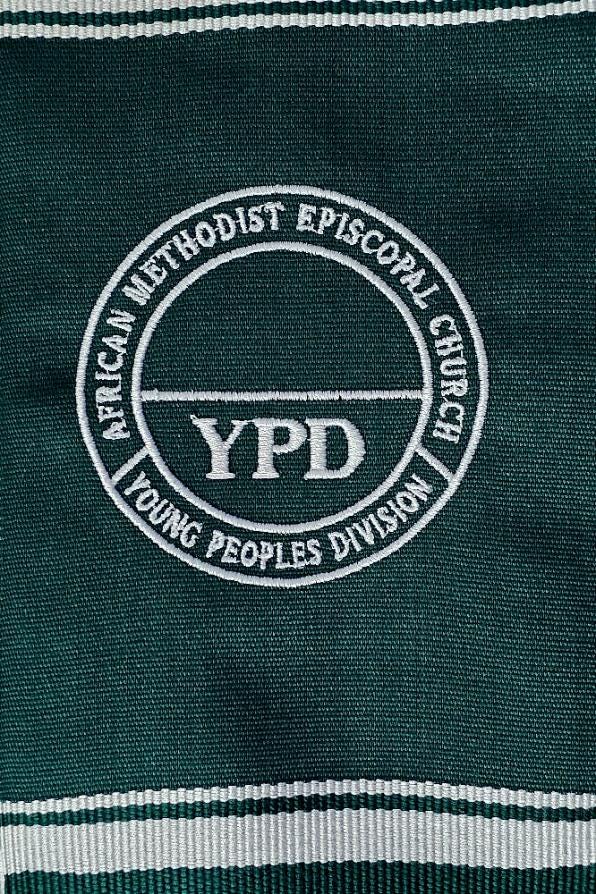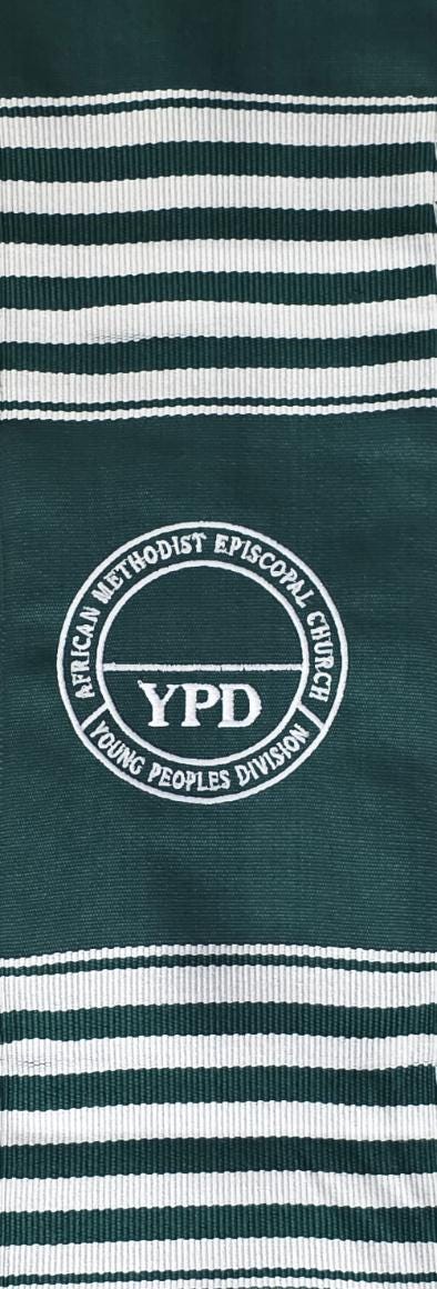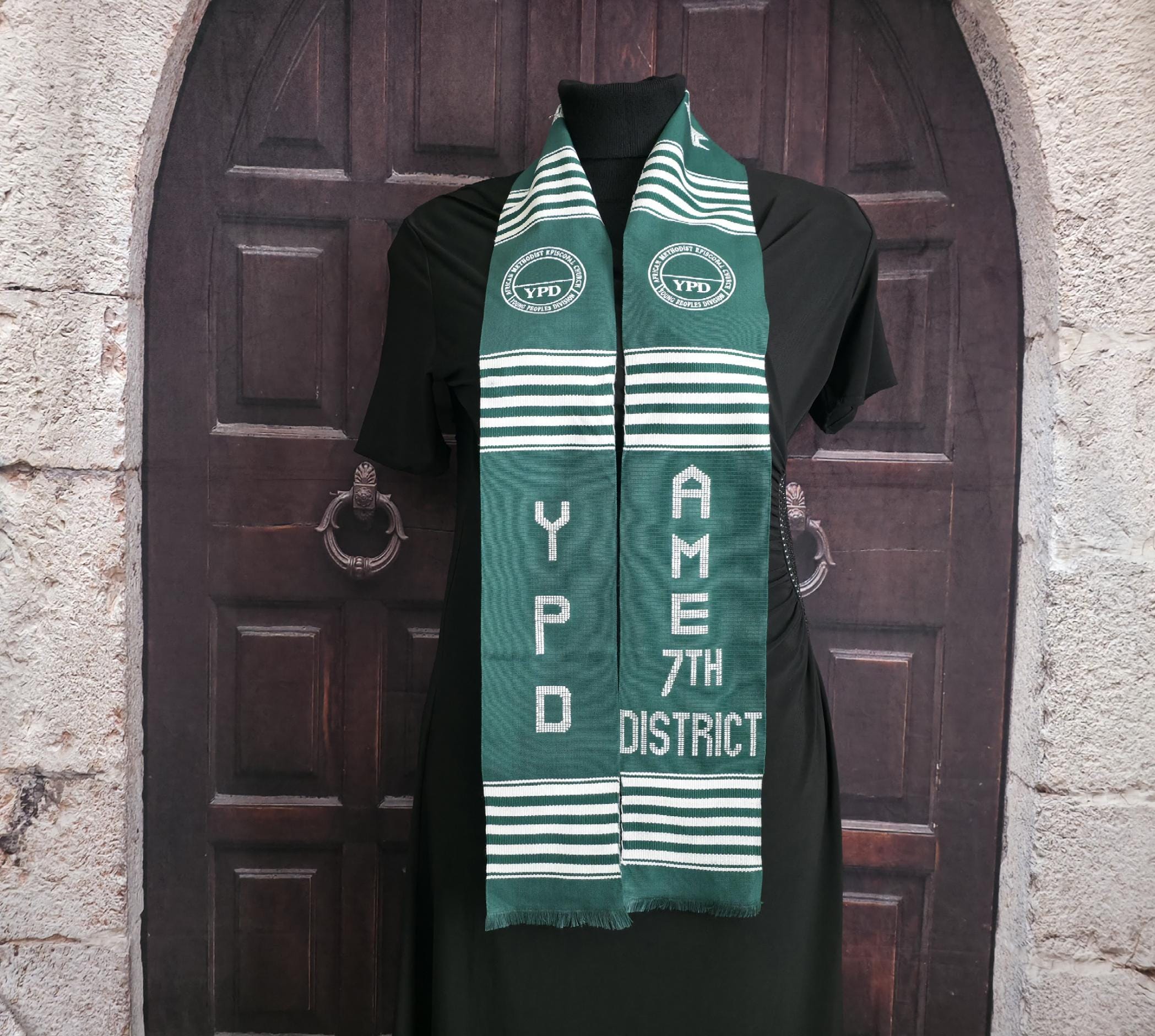 YPD LOGO AME 7TH DISTRICT Green and White Kente Stoles