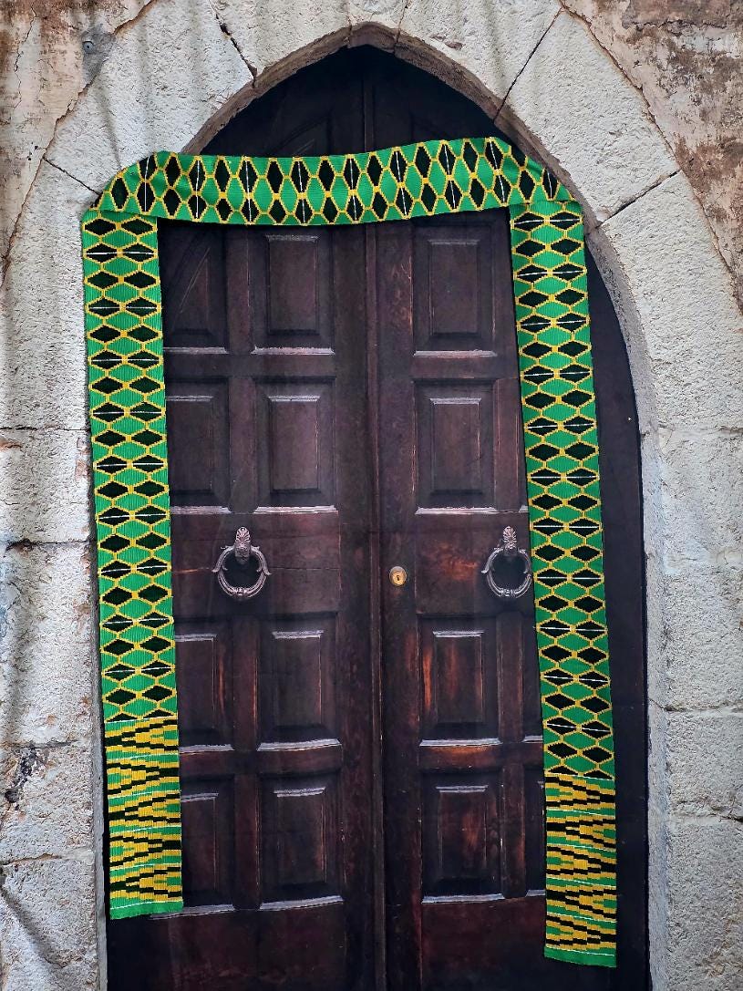 NOTE: USPS Ground Advantage is the slowest, cheapest and delivery days is NOT GUARANTEED. Normally takes 4-9 days for packages to be DELIVERED. Please take note.Altar or Stage Decoration. Handwoven In Ghana.12 feet x 5".