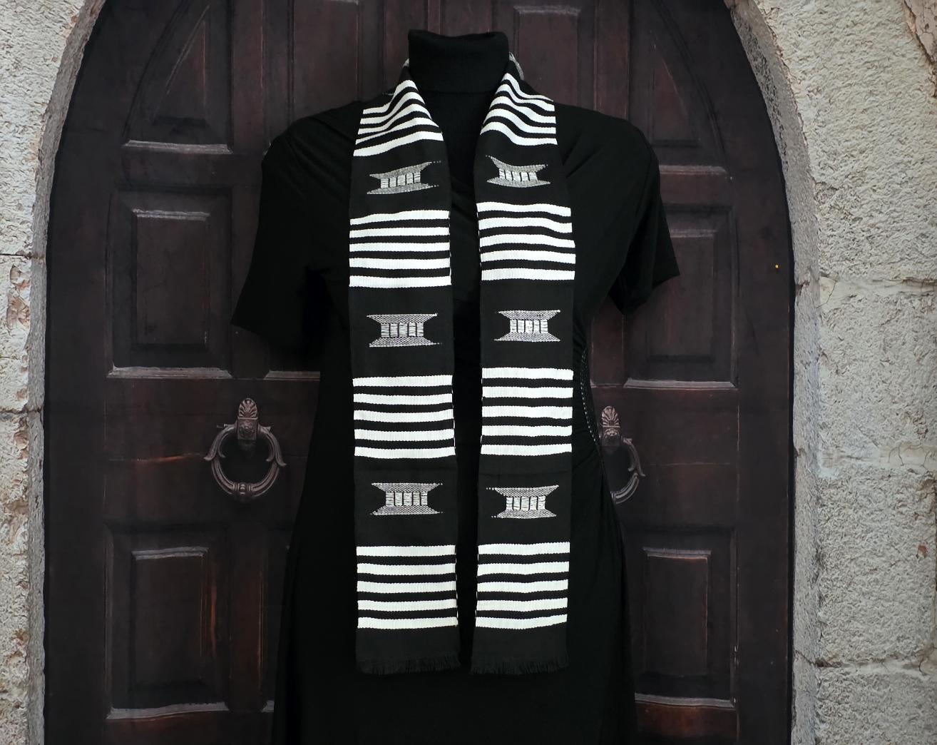 Heritage black and white Kente Stoles.