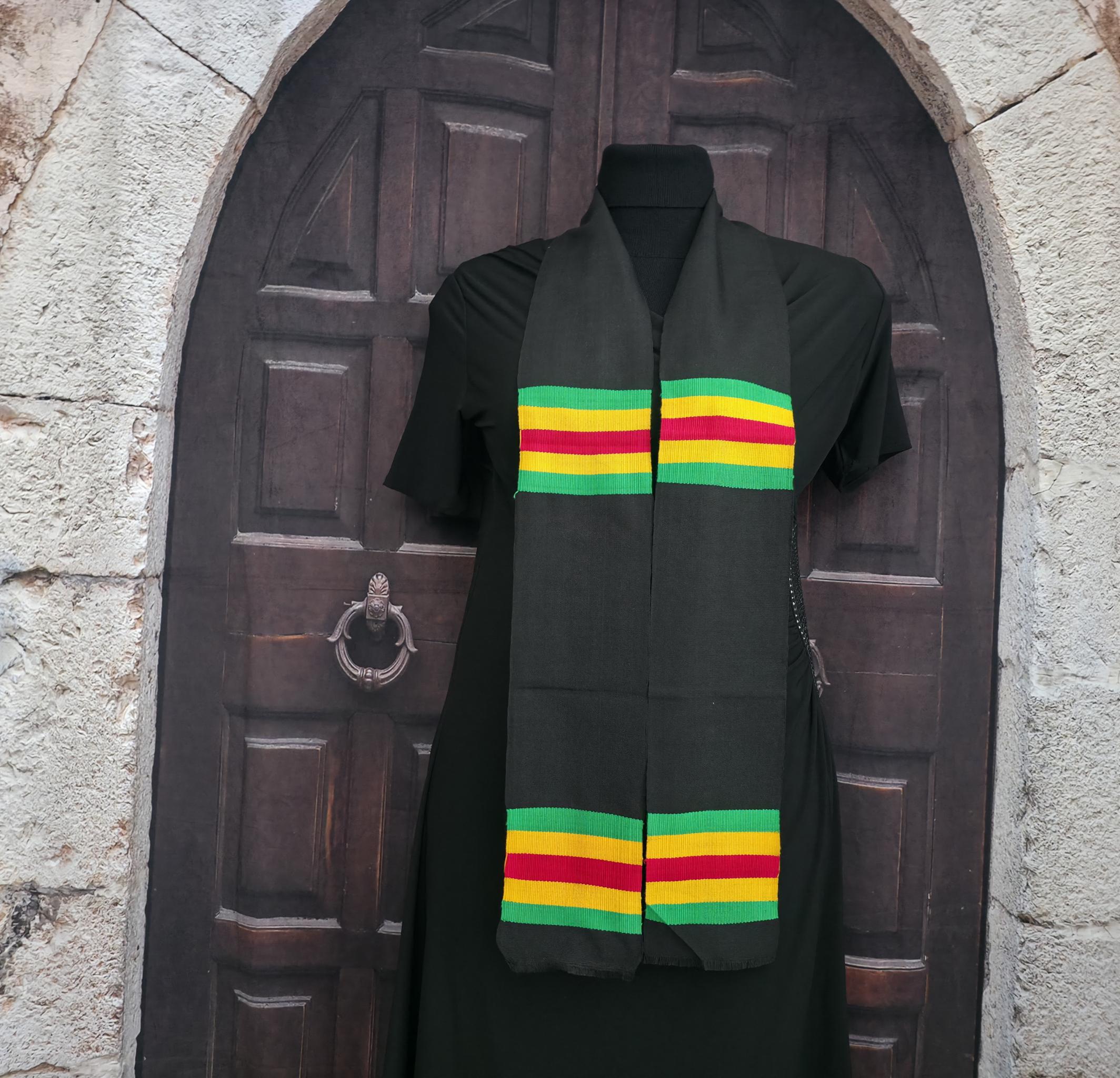 Blank Black with Green Gold Red Kente Stoles.