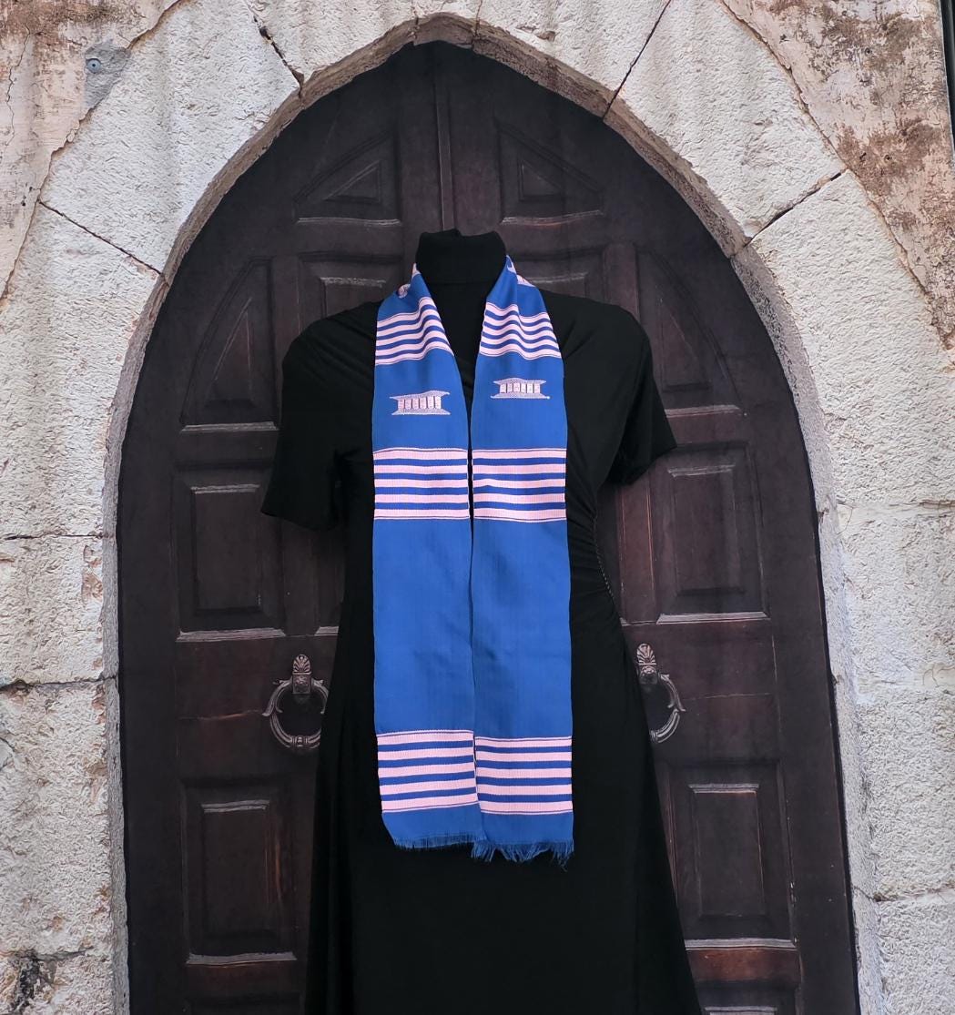 Custom Jack and Jill Blue Kente Cloth Stoles.Handwoven in Ghana.72" x 5".NOTE: WE WILL ONLY ACCEPT ORDERS OF 12 OR MORE.
